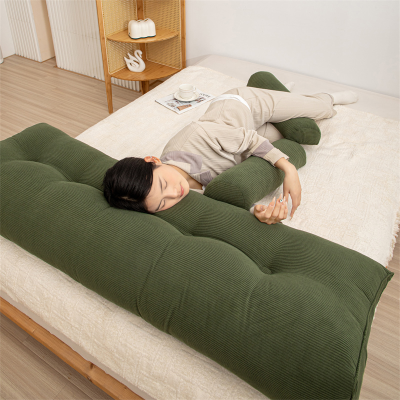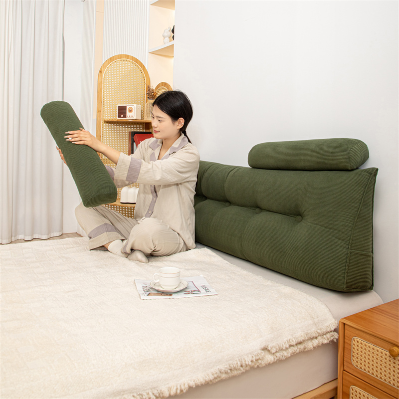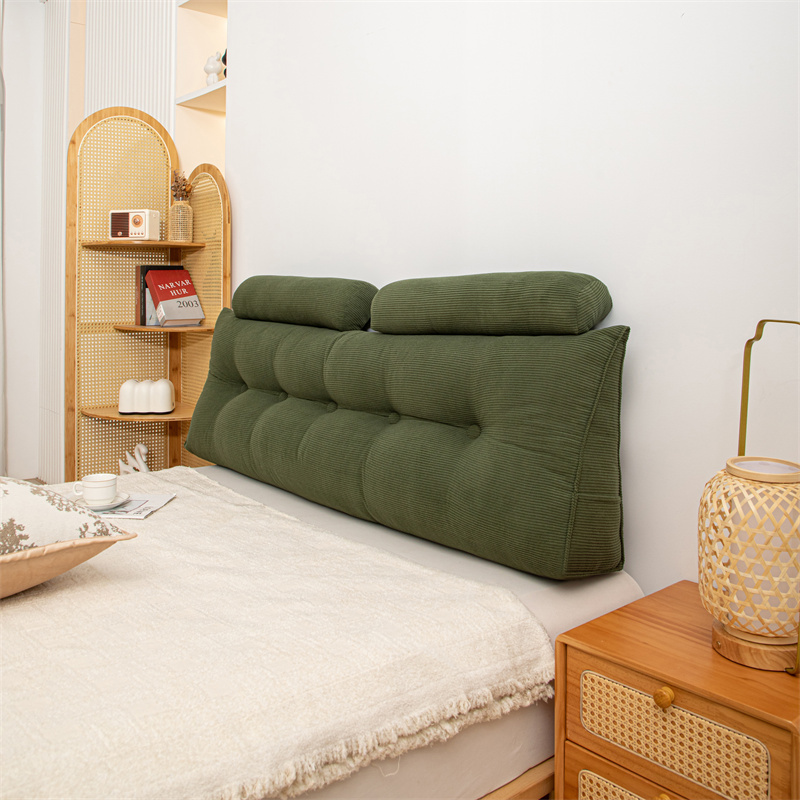 商品名称:沐沐家纺 2026新款灯芯绒三角靠背带头枕 墨玉绿