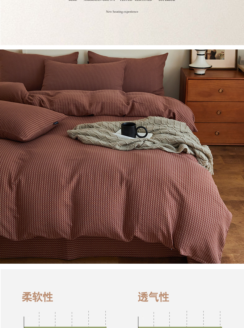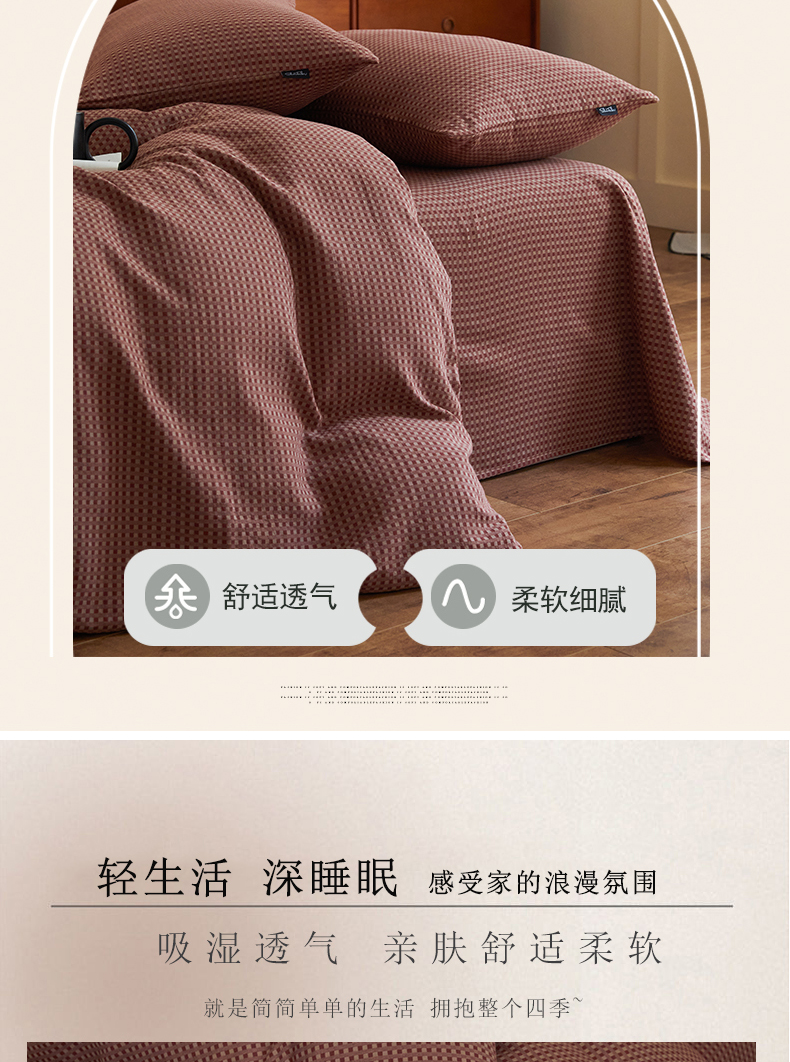 商品名称:云雀 2025新款A类全棉色织双层纱单床单 格林烟红