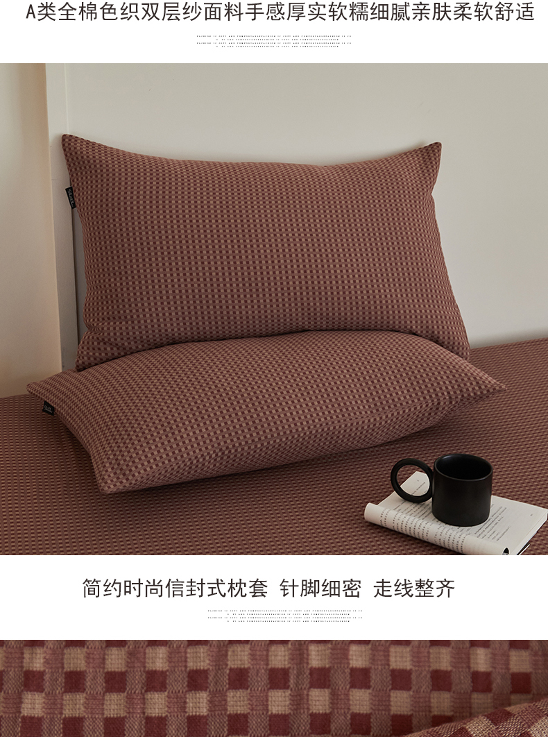 (总)云雀 2025新款A类全棉色织双层纱单床单,格林豆沙,格林咖色,格林绿,格林浅灰,格林深灰,格林烟红,格林烟灰