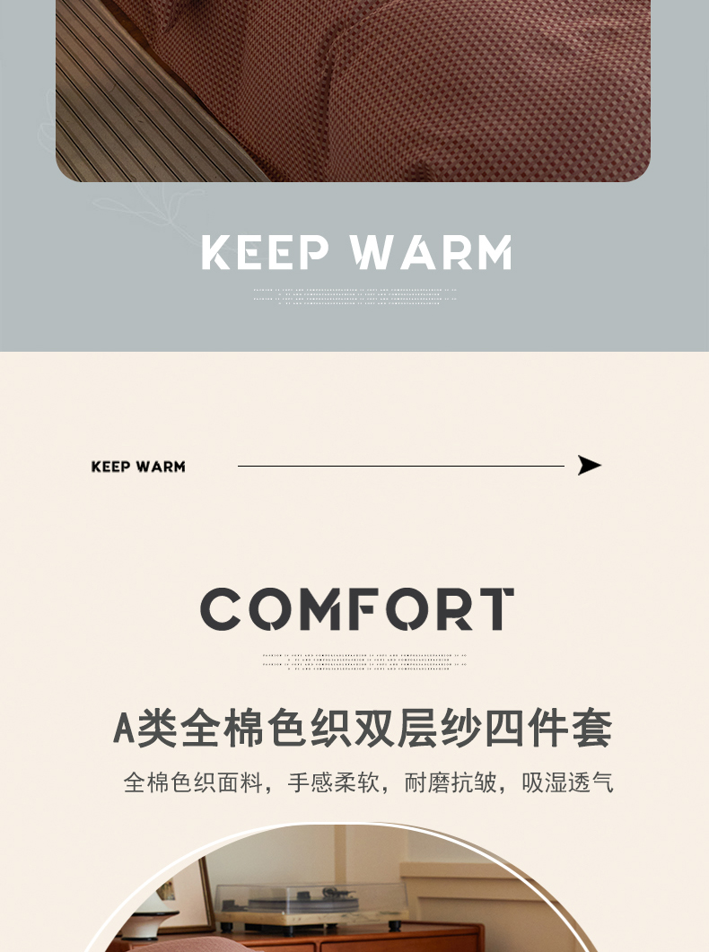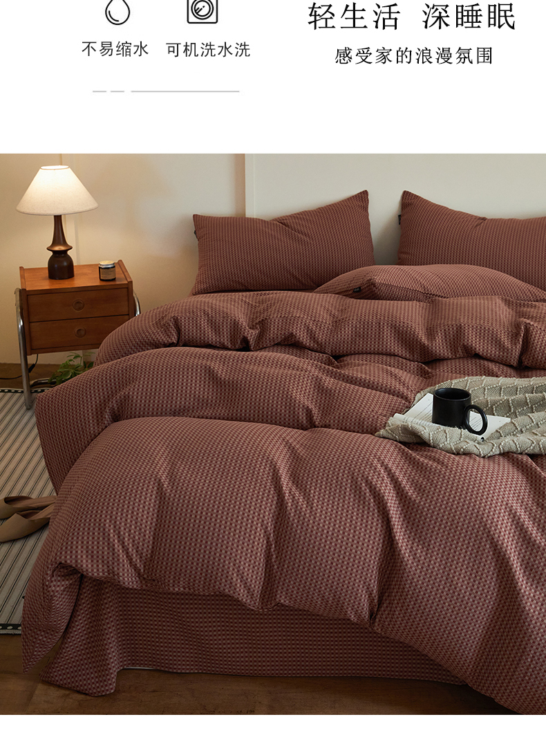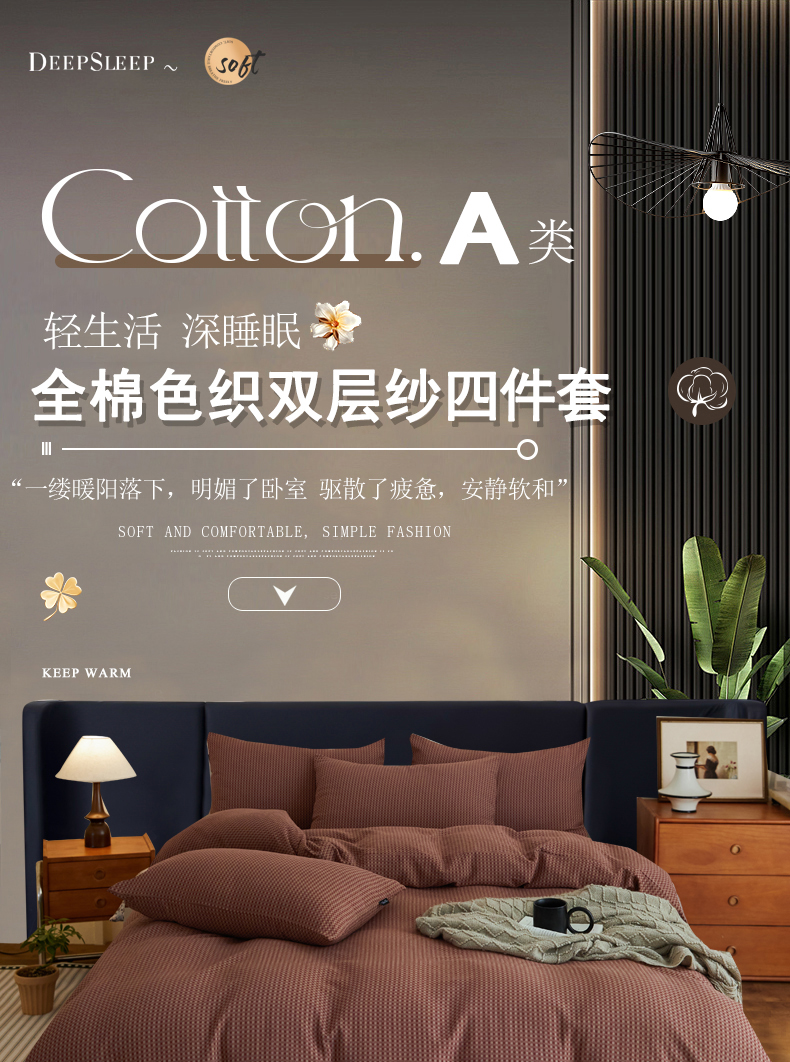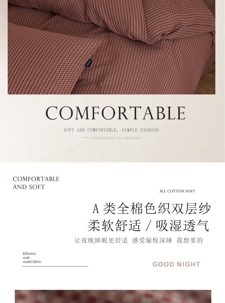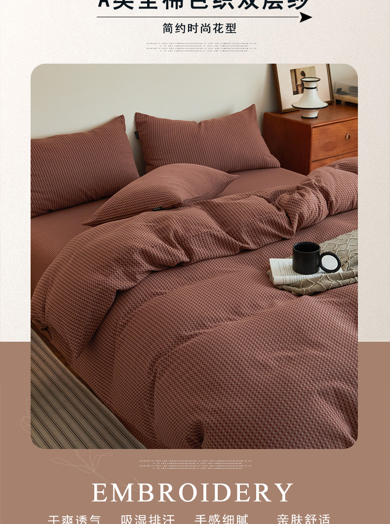 (总)云雀 2025新款A类全棉色织双层纱四件套,格林-豆纱,格林-咖色,格林-绿,格林-浅灰,格林-深灰,格林-烟红,格林-烟灰