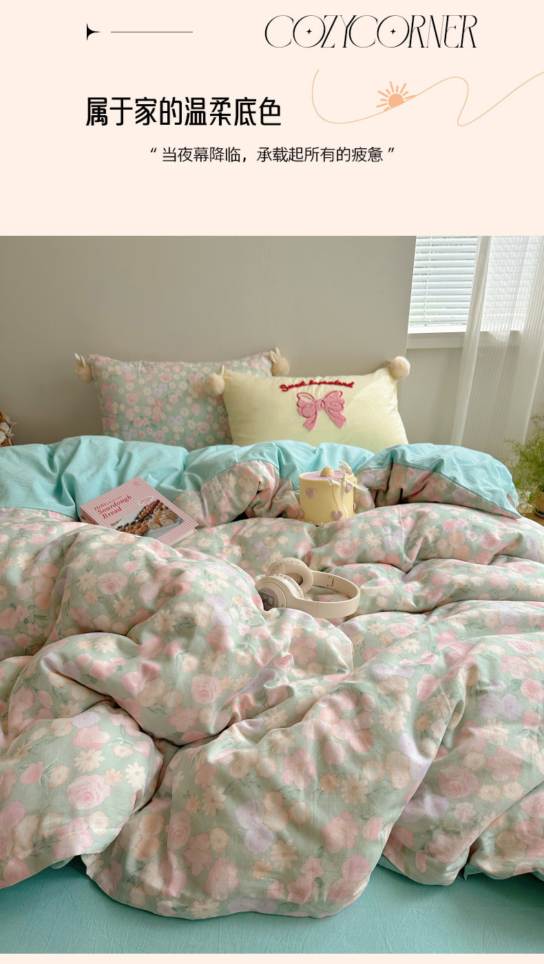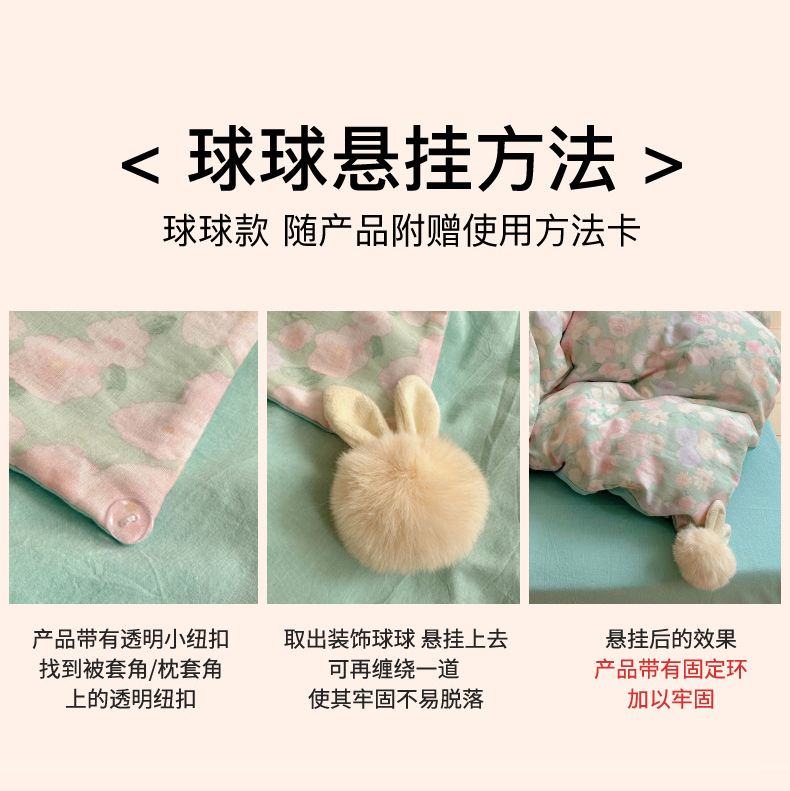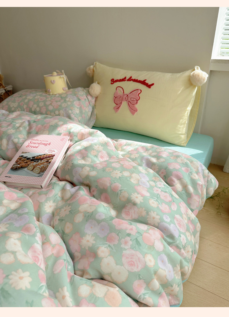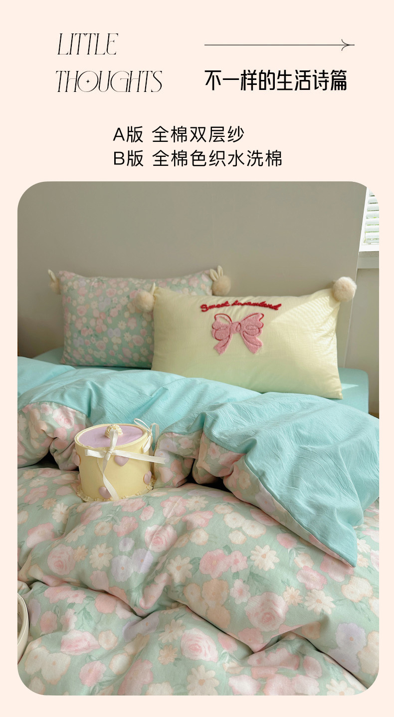 当前位置: 91家纺网 > 商品网购 > 床品套件 > 四件套 > 全棉普通四件套 > 丽涵家纺 2025新款全棉纯棉双层纱色织水洗棉毛巾绣四件套 球球款花花兔-豆绿