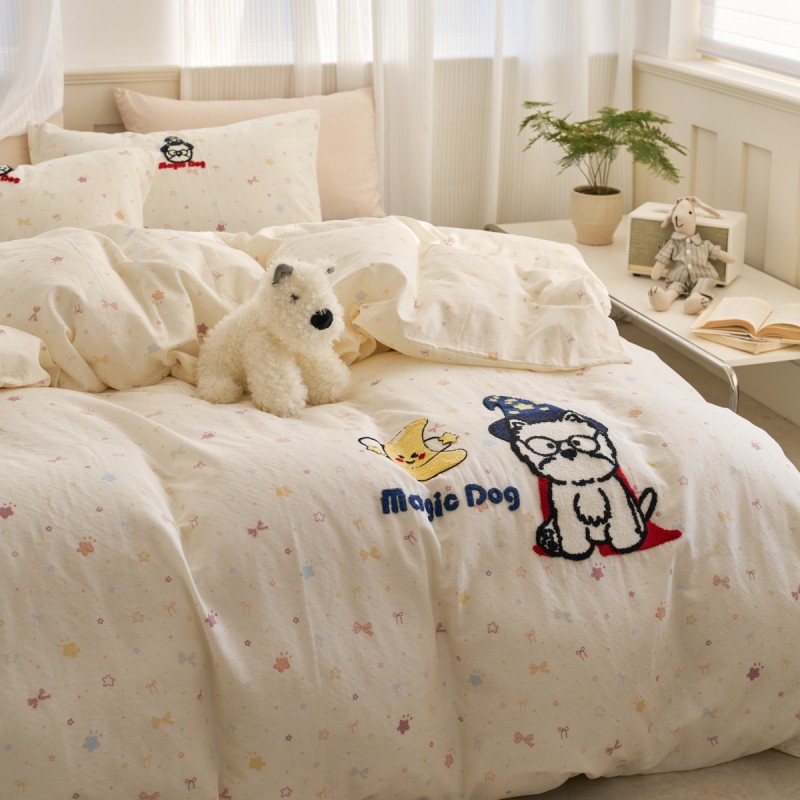 洋铭区(原狠狠爱) 2025新款A类全棉双层纱毛巾绣四件套 滑板小狗