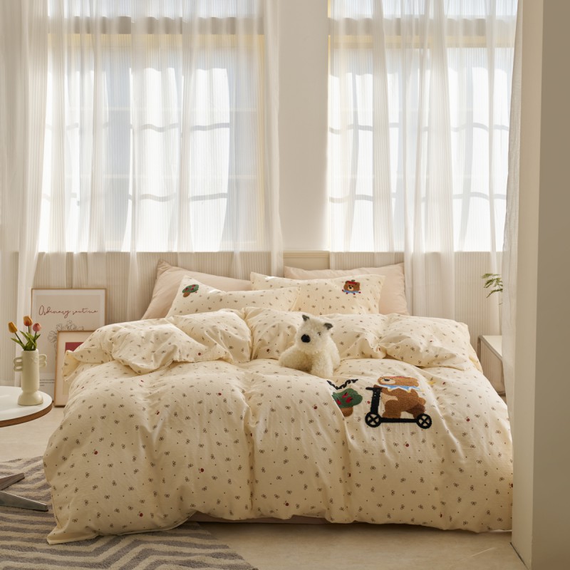 (总)洋铭区(原狠狠爱) 2026新款春季全棉彩边双层纱四件套,爱心宝莉,波斯小懒狗,繁花兔兔,格格小熊,海蓝小木马,红格小马,红枣小兔,花朵兔兔,焦糖小熊,兰花香,绿芽小马,萌宠小分队,奶茶蝴蝶结,奶糕熊熊,汽车派对,桃桃粉花,甜果小象,图图小狮子,幸运小可爱,熊猫嘟嘟,遇见粉花,月光宝宝
