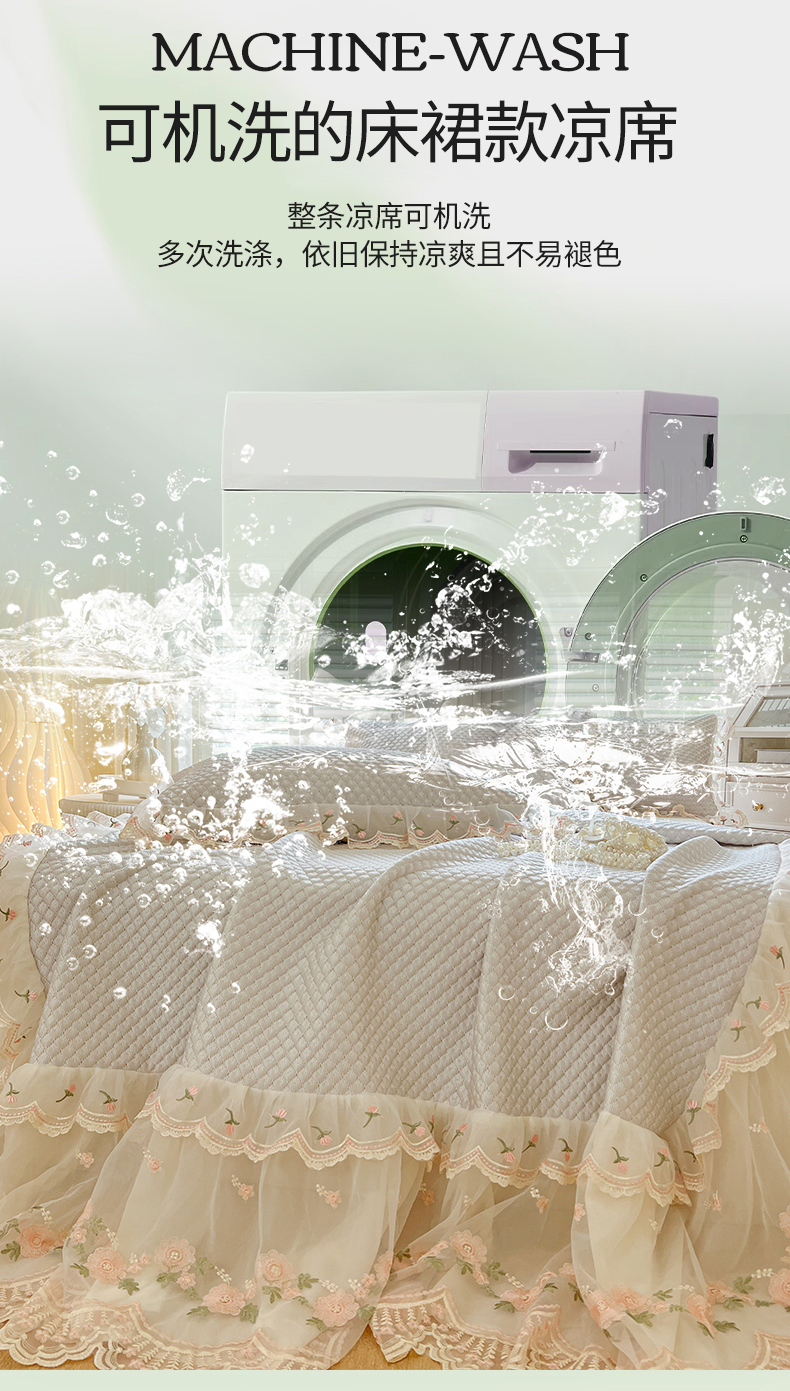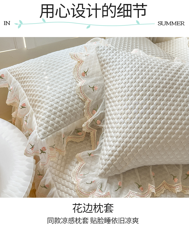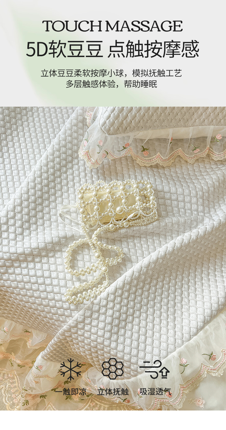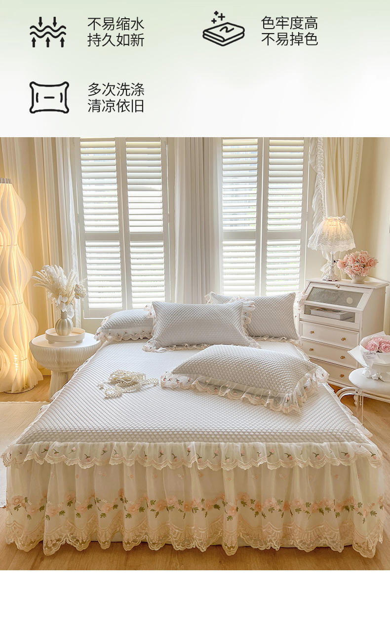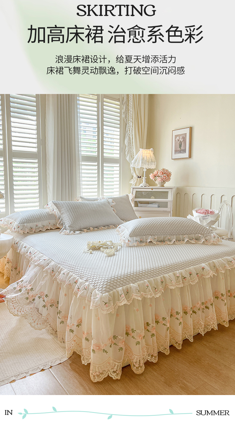 商品名称:网红馆(ck家纺) 2025新款凉感蕾丝花边床裙款豆豆席凉席-艾薇儿 艾薇儿-灰