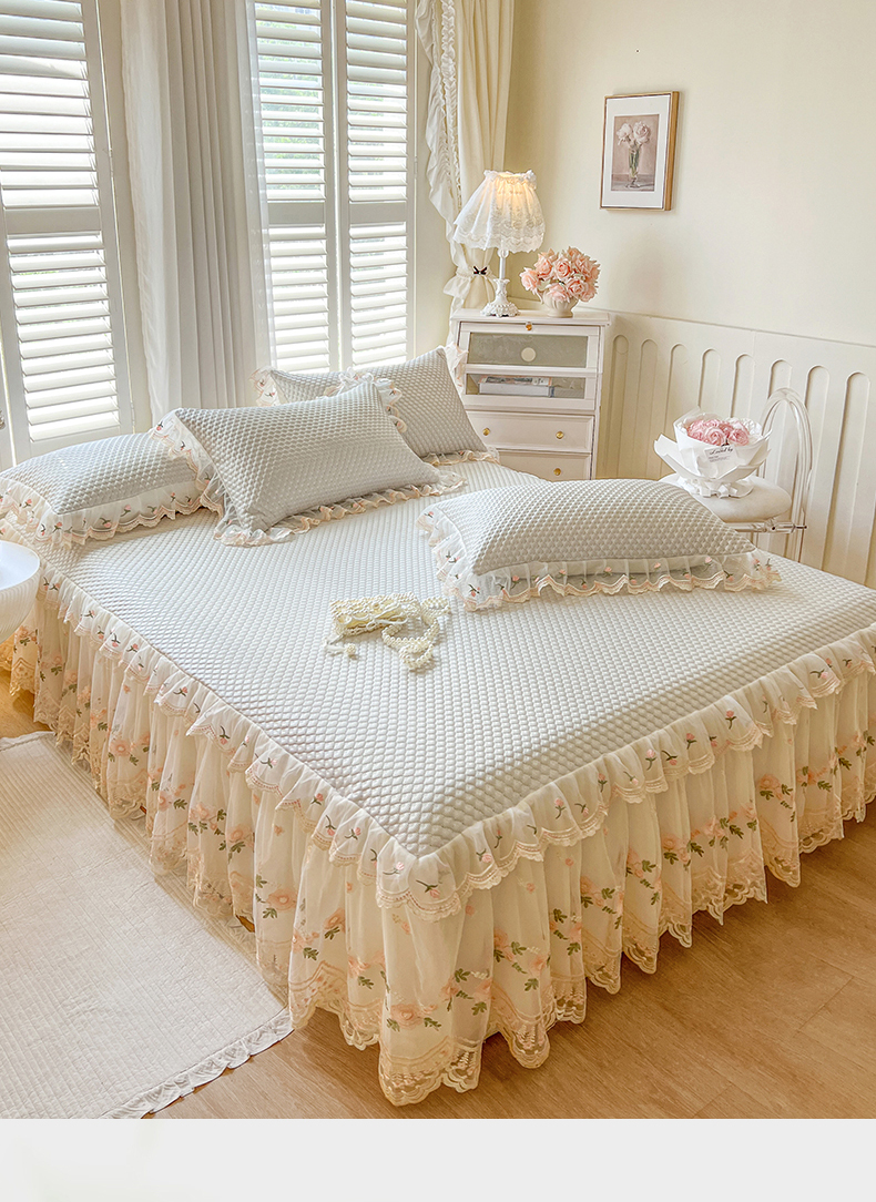 (总)网红馆(ck家纺) 2025新款色织提花牛奶绒床裙四件套-洛丽塔系列,洛丽塔-豆沙,洛丽塔-蓝色,洛丽塔-米色