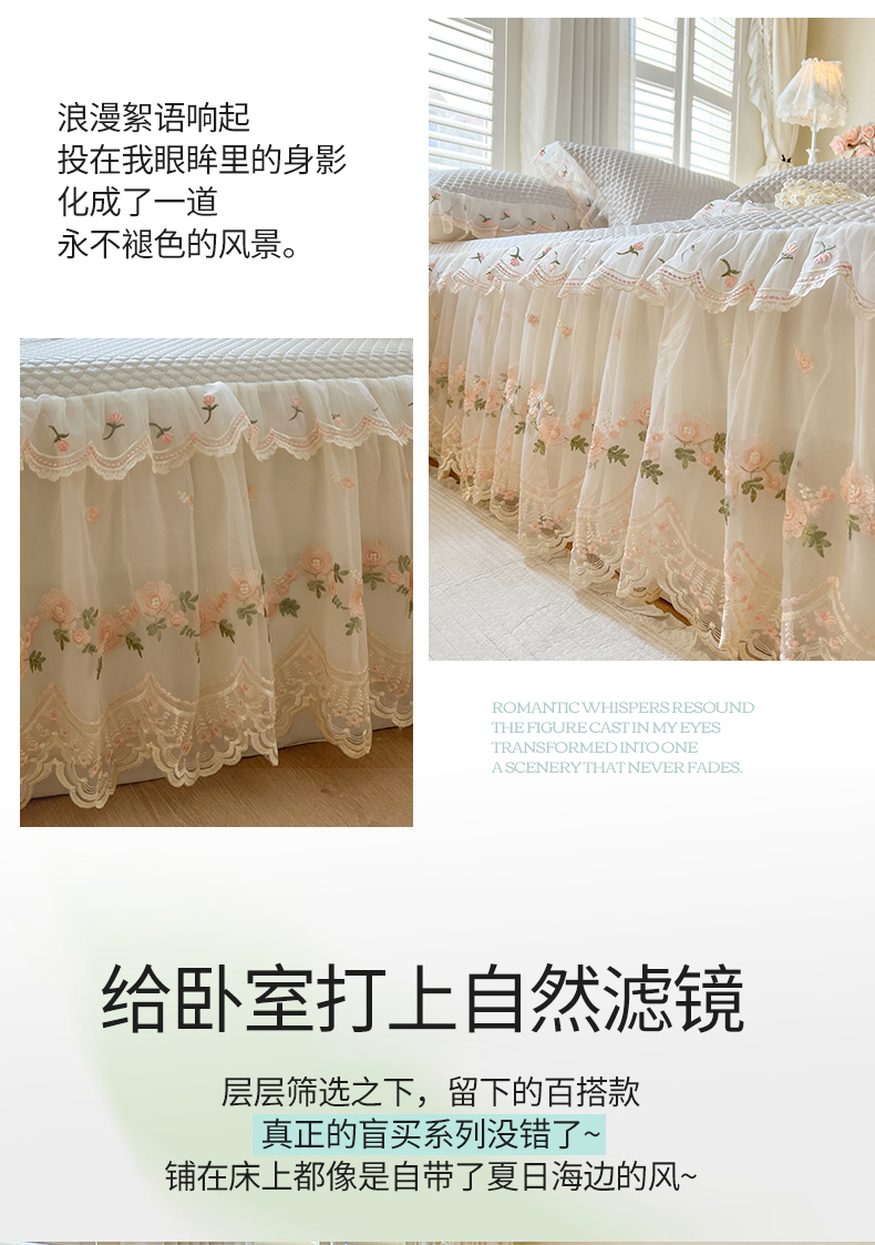 (总)网红馆(ck家纺) 2026新款全棉蕾丝花边床裙款床笠晨暮花间系列,绯红,粉色,麦绿,米色,浅紫,雾蓝