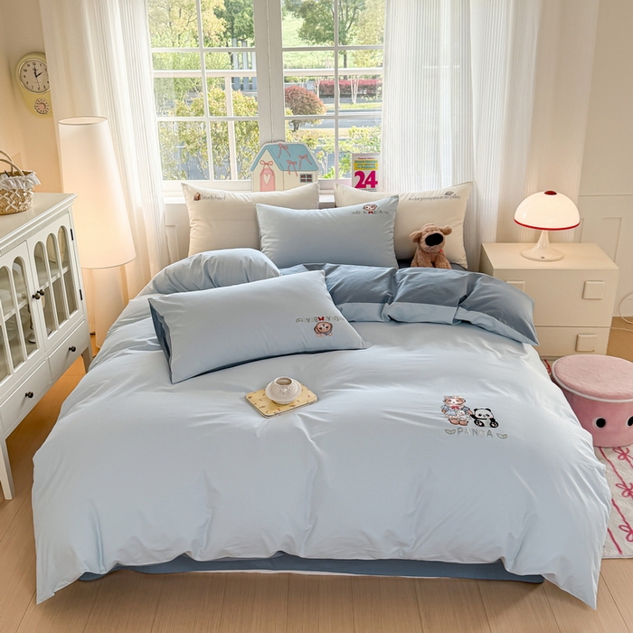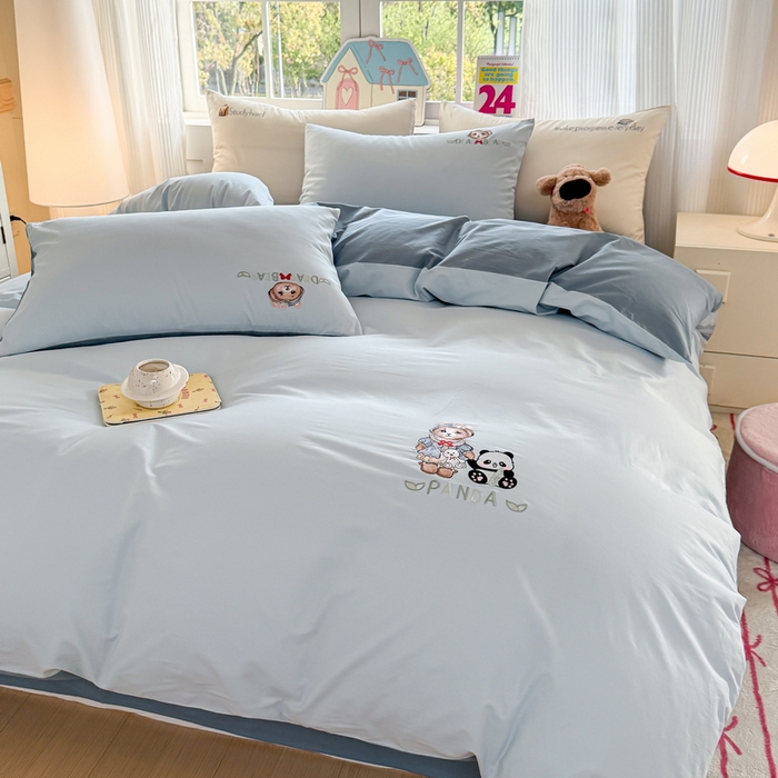 (总)雲归梦 2025春夏新款全棉纯棉刺绣潮熊学院派系列四件套,比尔熊,肯尼熊,穆赛熊,熊猫熊,学院熊,雅莱熊