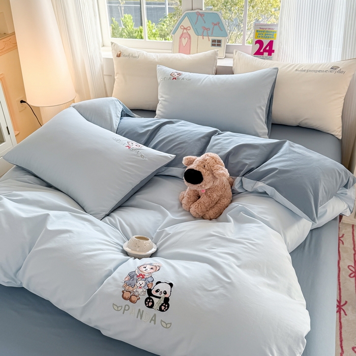 商品名称:雲归梦 2025春夏新款全棉纯棉刺绣潮熊学院派系列四件套 比尔熊
