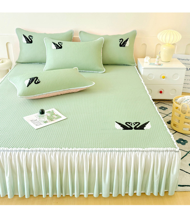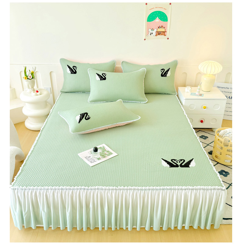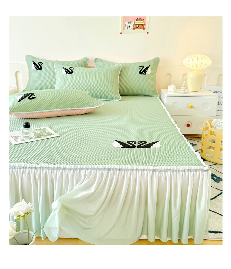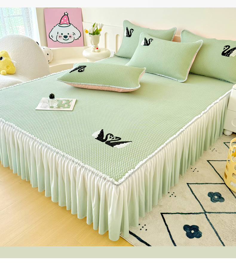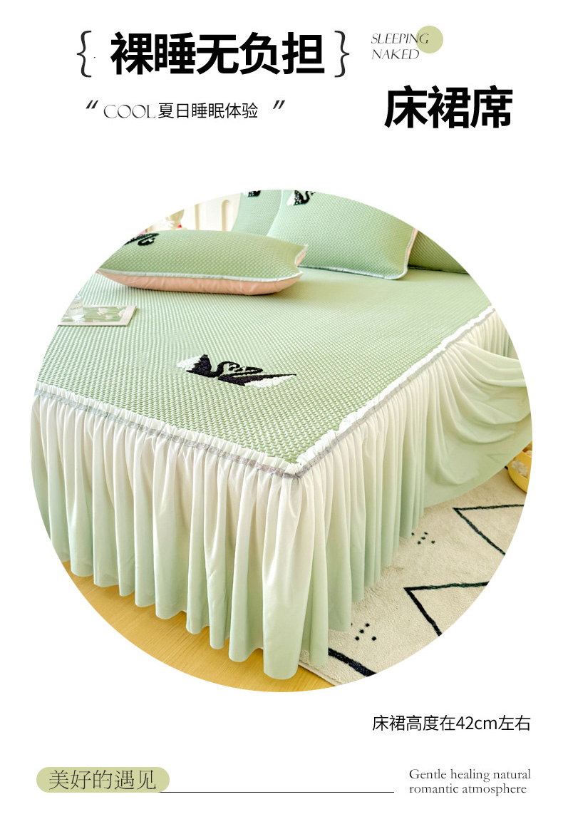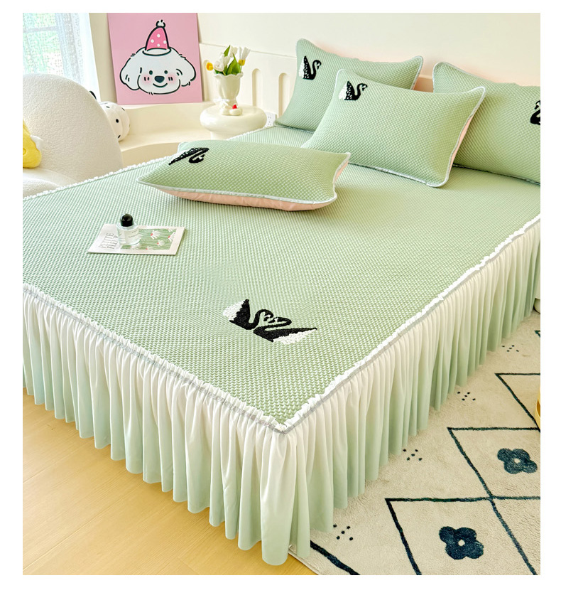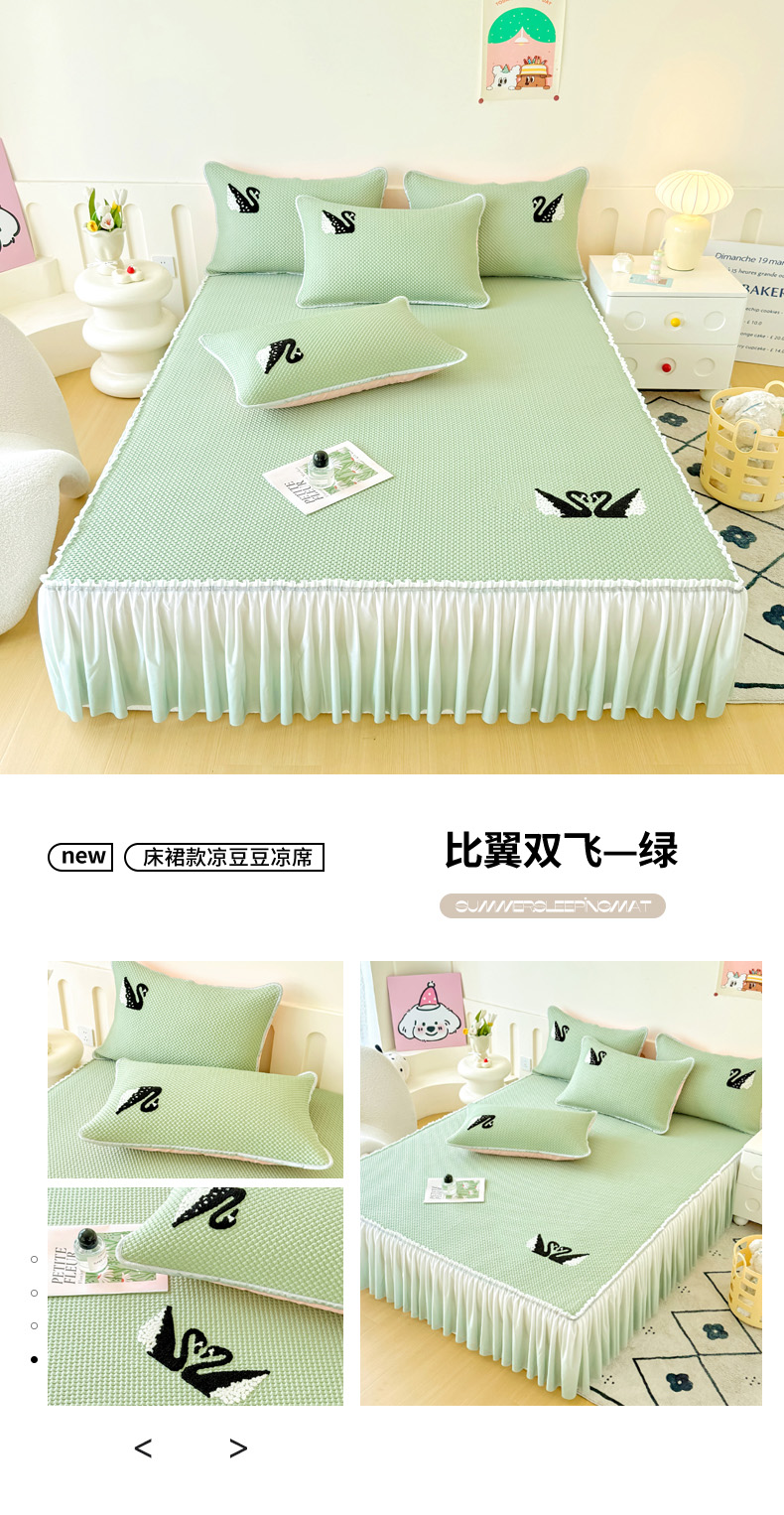 恋佳居2025新款A类乙伦PE凉豆豆毛巾绣仙女风冰丝席 比翼双飞—绿