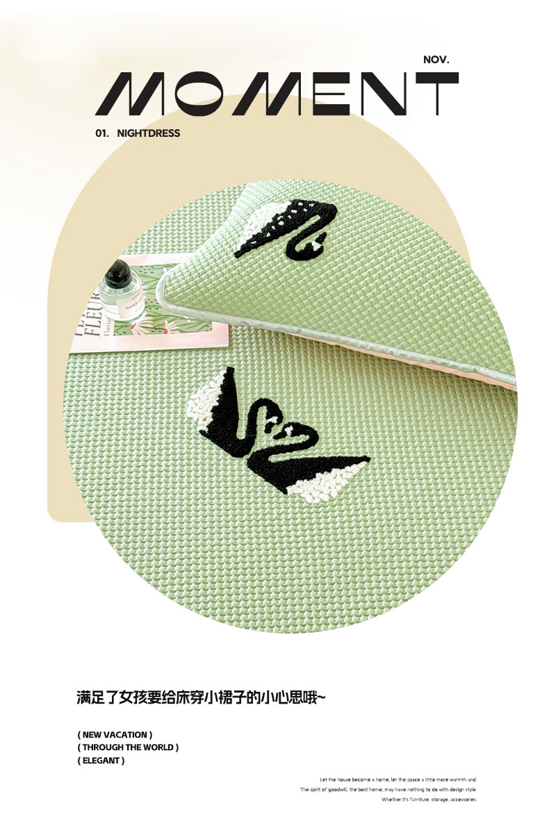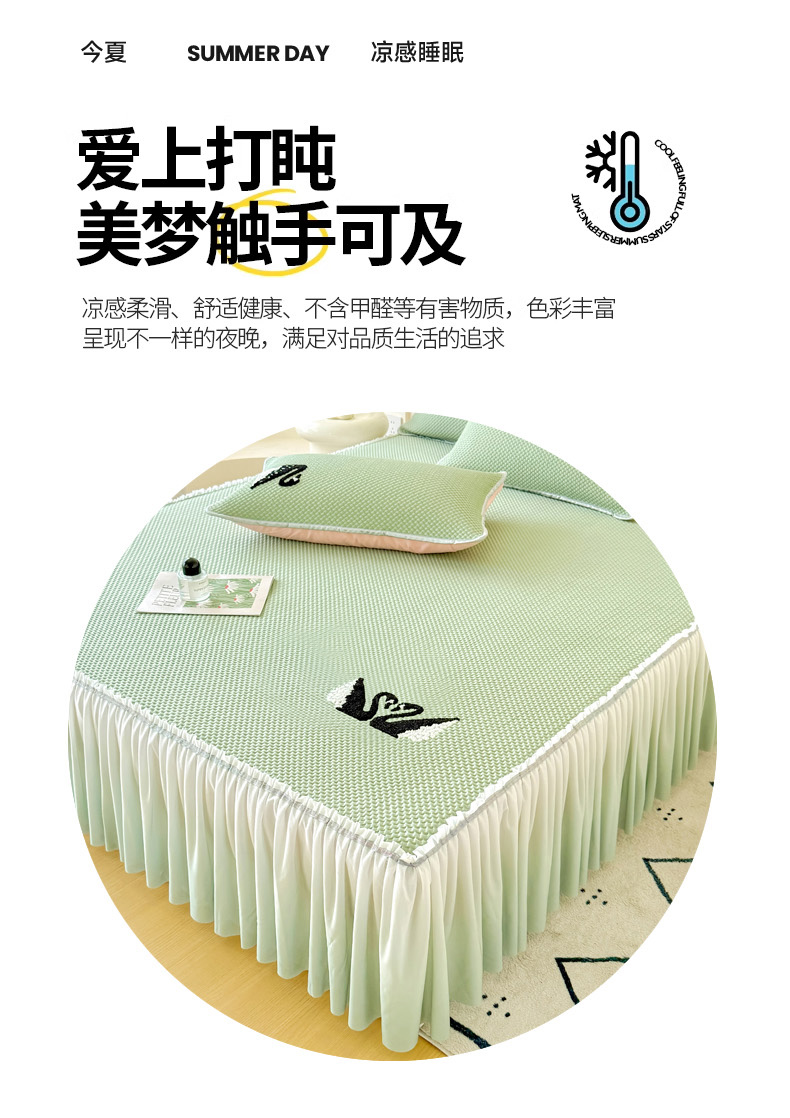 商品名称:恋佳居2025新款A类乙伦PE凉豆豆毛巾绣仙女风冰丝席 比翼双飞—绿