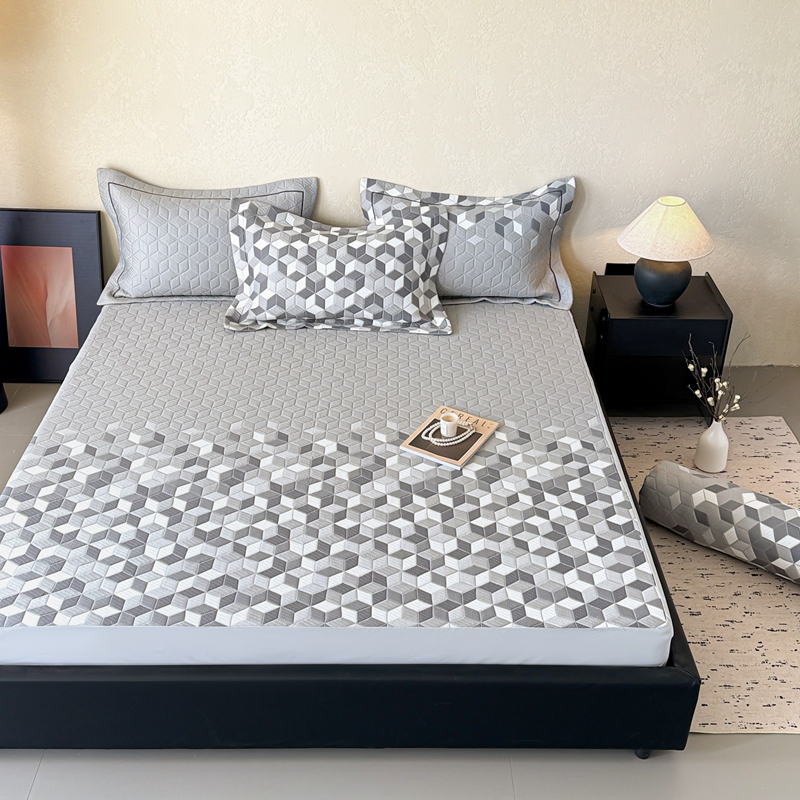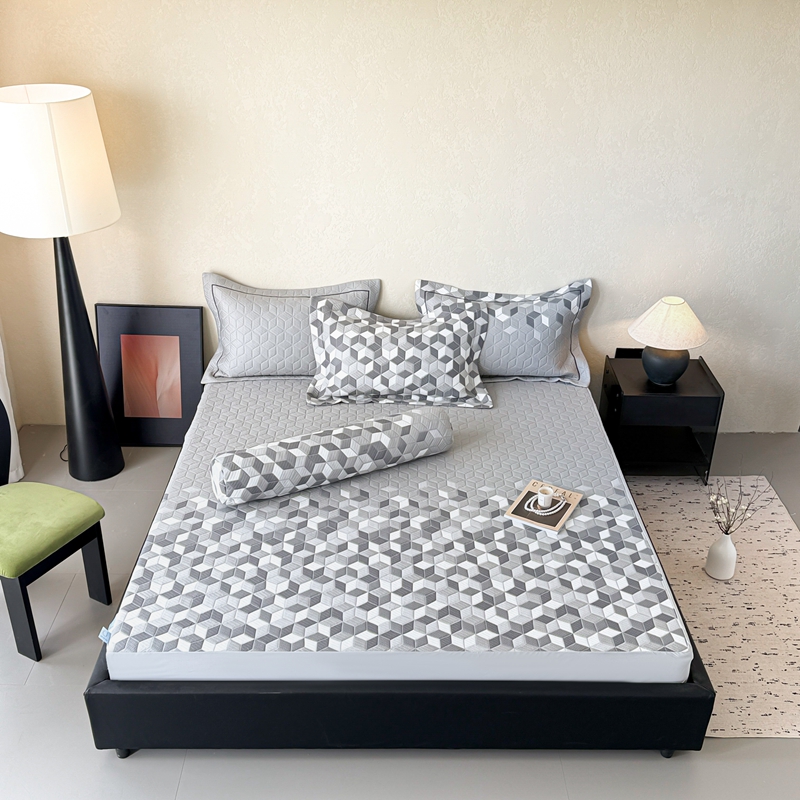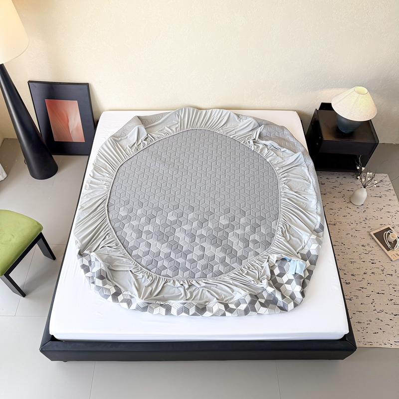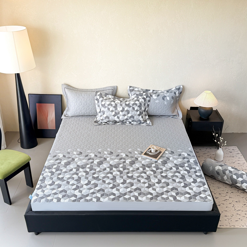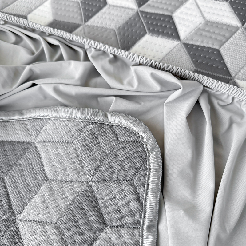 床上用品 > 床笠 > 若未家居 LOVEWE HOUSE 2025新款800克进口高分子100%乙纶PE冷凝凉感软席凉席渐变色织提花系列床笠-床笠款 魔方-玄灰