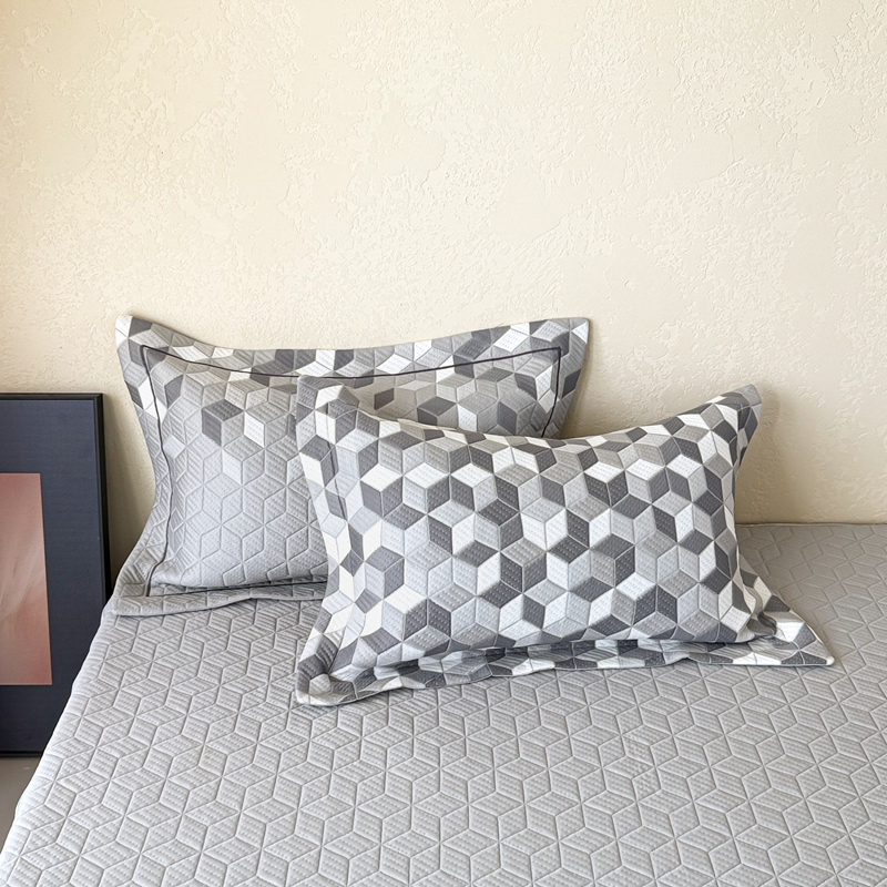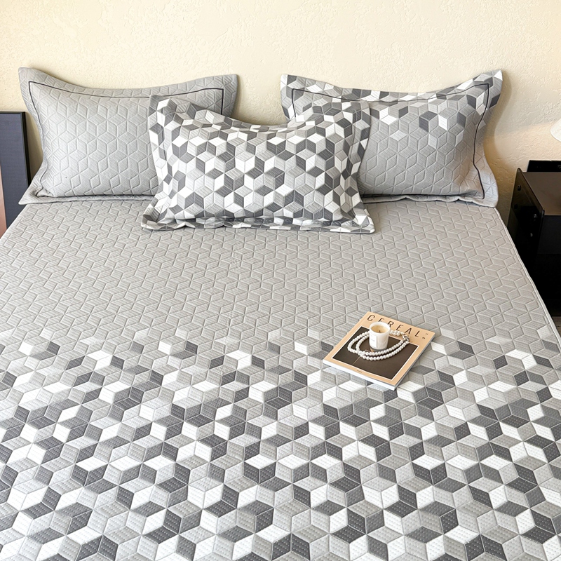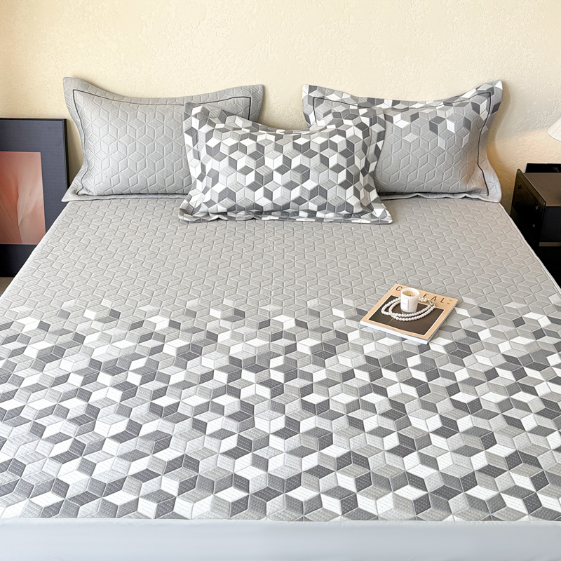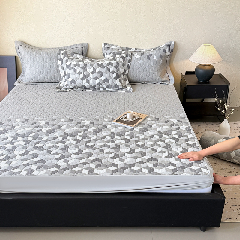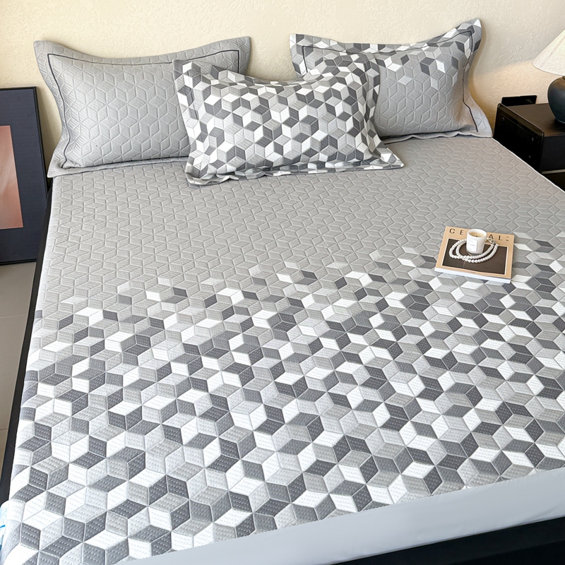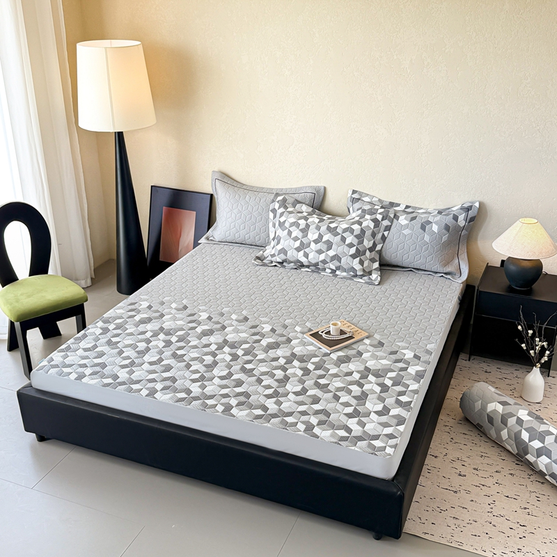 床上用品 > 床笠 > 若未家居 LOVEWE HOUSE 2025新款800克进口高分子100%乙纶PE冷凝凉感软席凉席渐变色织提花系列床笠-床笠款 魔方-玄灰