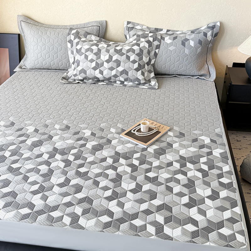 商品名称:若未家居 LOVEWE HOUSE 2025新款800克进口高分子100%乙纶PE冷凝凉感软席凉席渐变色织提花系列床笠-床笠款 魔方-玄灰