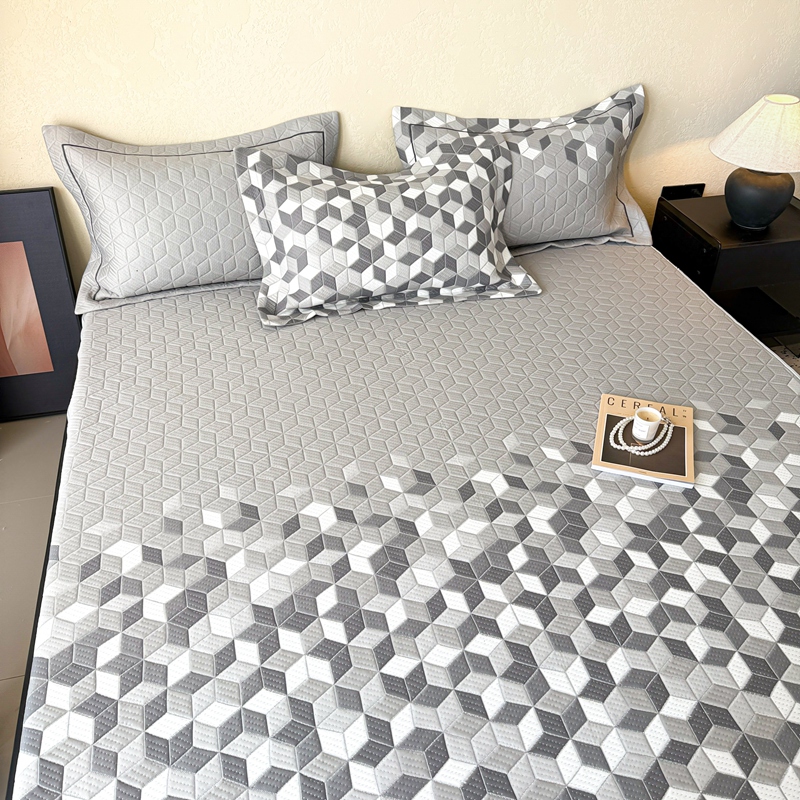 若未家居 LOVEWE HOUSE 2025新款800克进口高分子100%乙纶PE冷凝凉感软席凉席渐变色织提花系列床笠-床笠款 魔方-玄灰