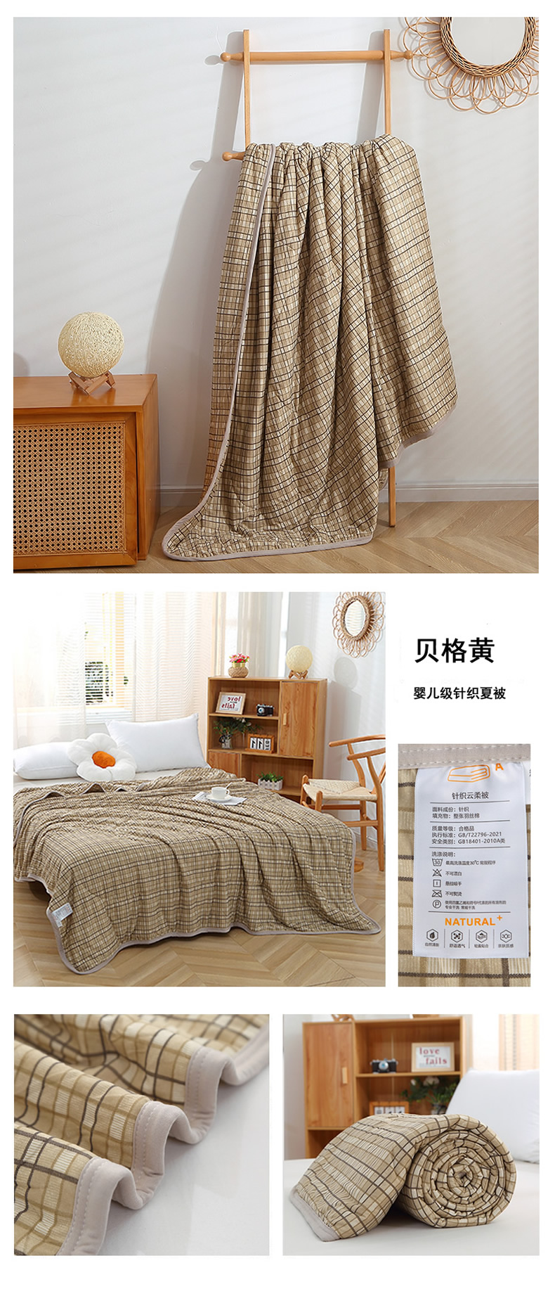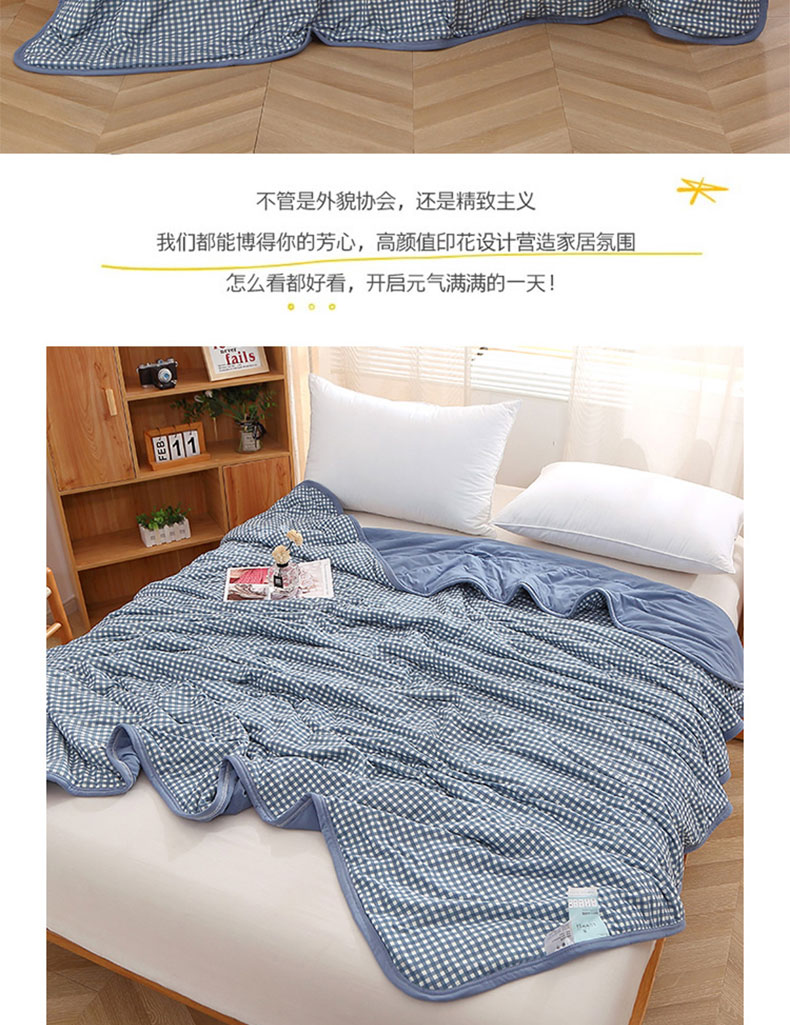 商品名称:贝兰仙奴 2025春夏新款针织棉格子印花夏被夏凉被空调被 小蓝格