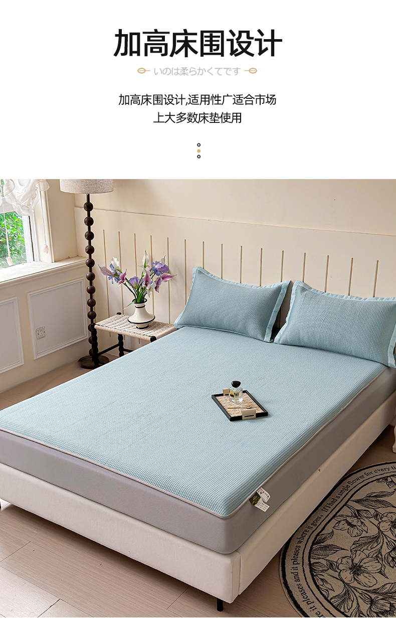瑞兴纺 2025新款复合加厚高克重凉感席床笠款 华夫格-蓝