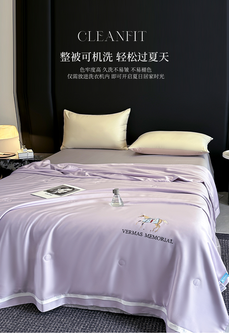 商品名称:薇玛仕 2025新款绣花款80支兰精天丝可水洗蚕丝夏凉被空调被 静谧紫