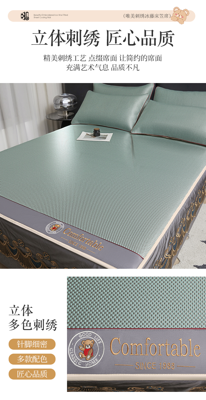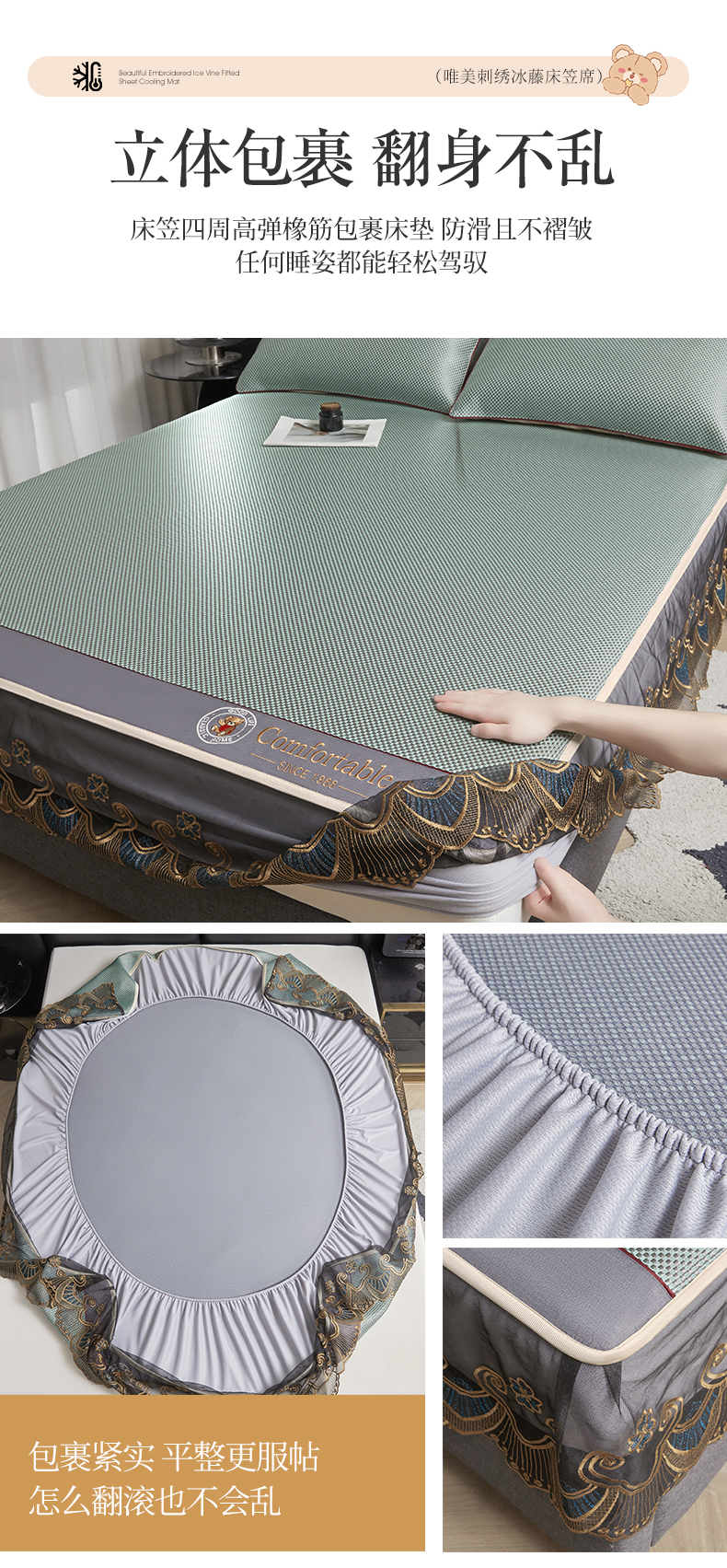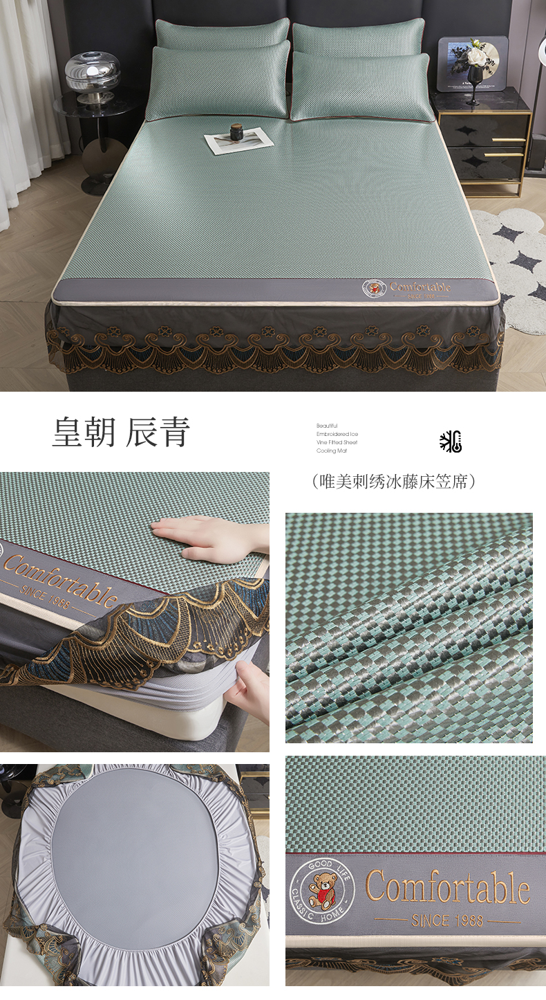商品名称:情恒家纺 2025新款冰藤席床笠款三件套 皇朝 辰青
