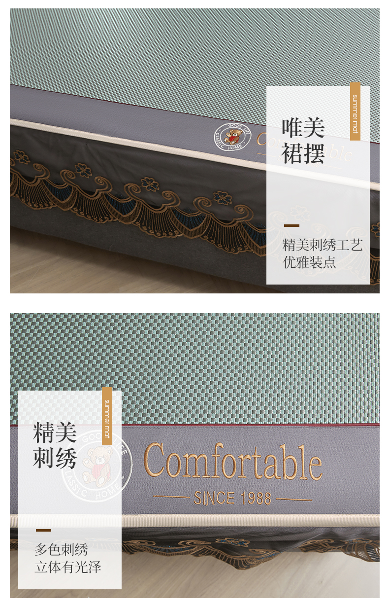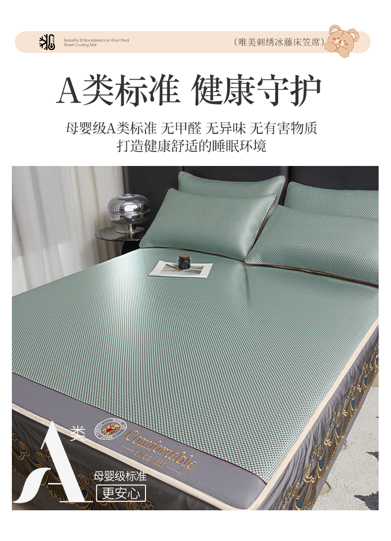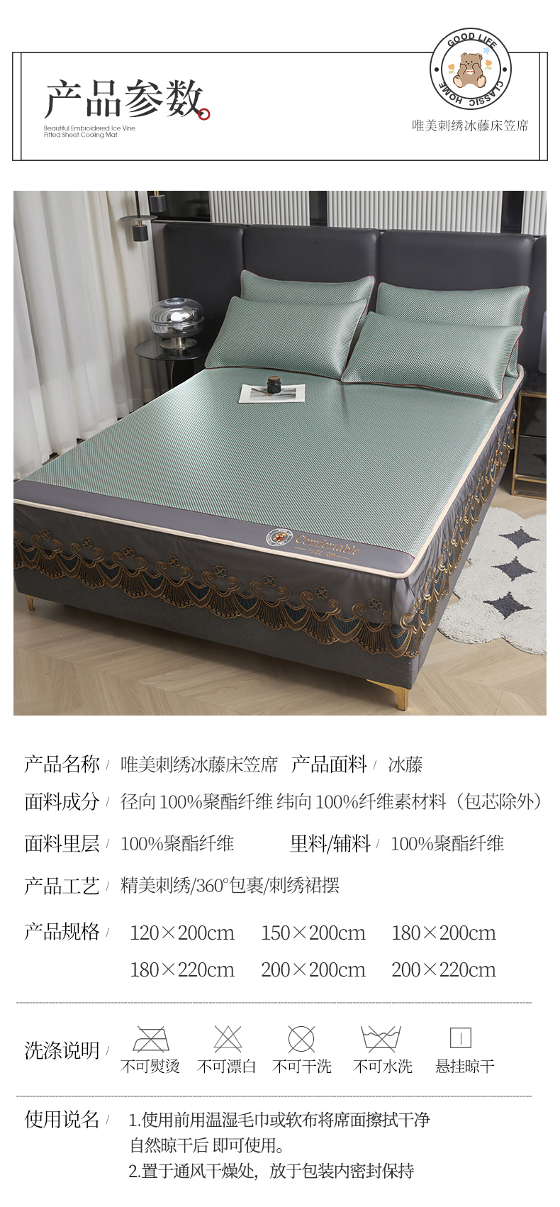 商品名称:情恒家纺 2025新款冰藤席床笠款三件套 皇朝 辰青
