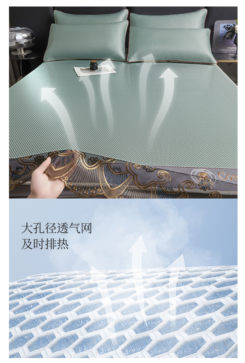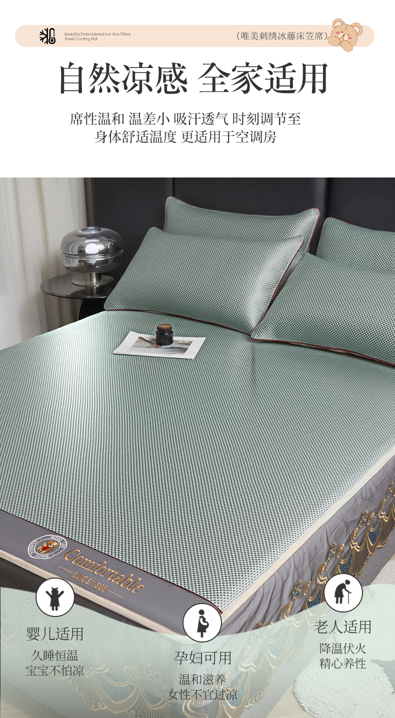 情恒家纺 2025新款冰藤席床笠款三件套 皇朝 辰青