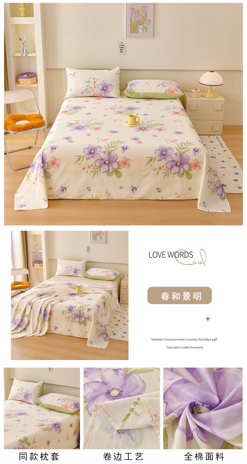 商品名称:宇彬家纺 2025直播新款13070全棉纯棉印花双人单床单枕套三件套喷气小清新简约学生被单