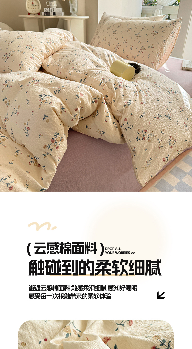 • 91家纺网 家纺一手货源 找家纺 韩巢家纺 2025热销新款云感双层纱单件被套-(提供卖家秀) 春风十里