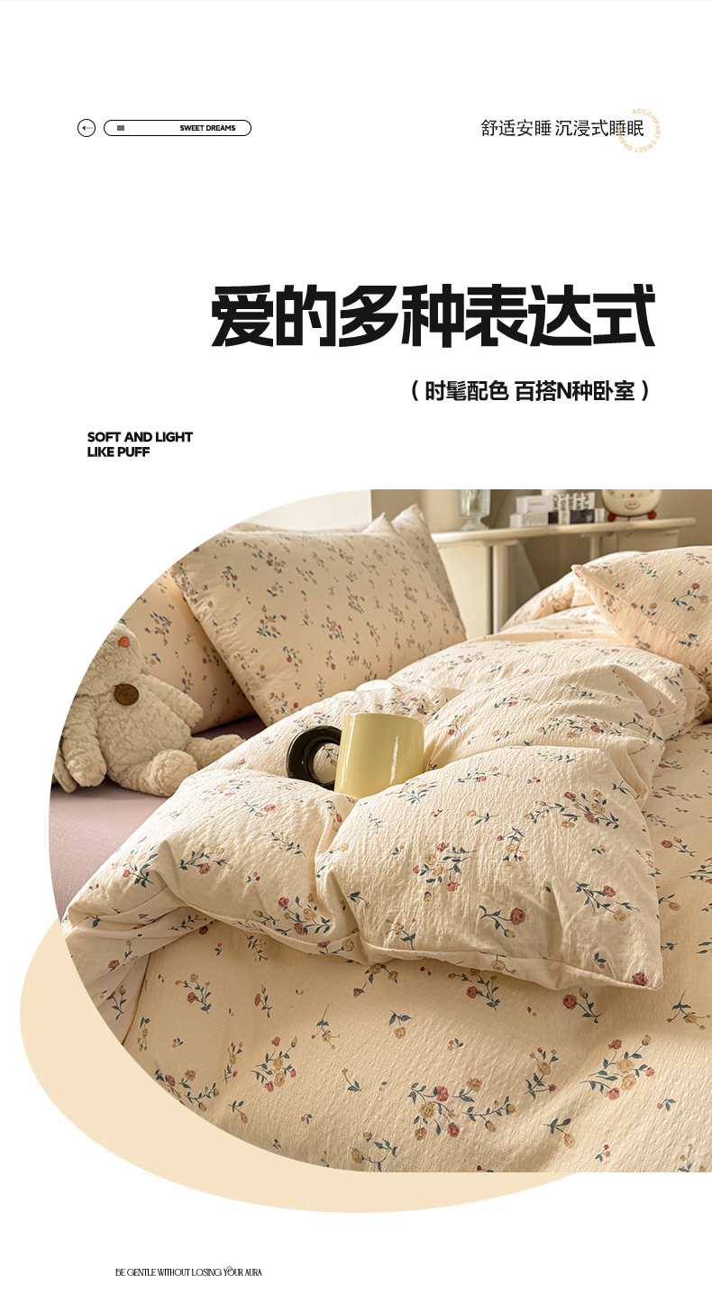 (总)韩巢家纺 2026新款水洗棉花边款四件套,灰蒙小狗【大花边款】,春日与玫瑰【大花边款】,繁花似梦【大花边款】,花时宇间【大花边款】,久期诗朵-黄【大花边款】,可可腊肠犬【大花边款】,奶油樱桃【大花边款】,软糖猫【大花边款】,甜樱恋曲【大花边款】,温暖粉心【大花边款】,小花野-紫【大花边款】,小熊冰淇淋【大花边款】,星梦蝶结【大花边款】,幸运可爱兔【大花边款】,摘樱桃的小熊【大花边款】