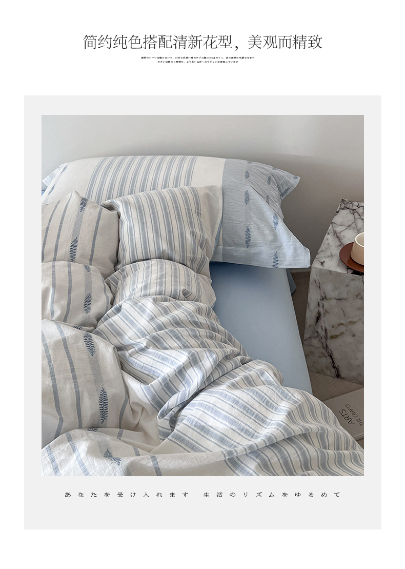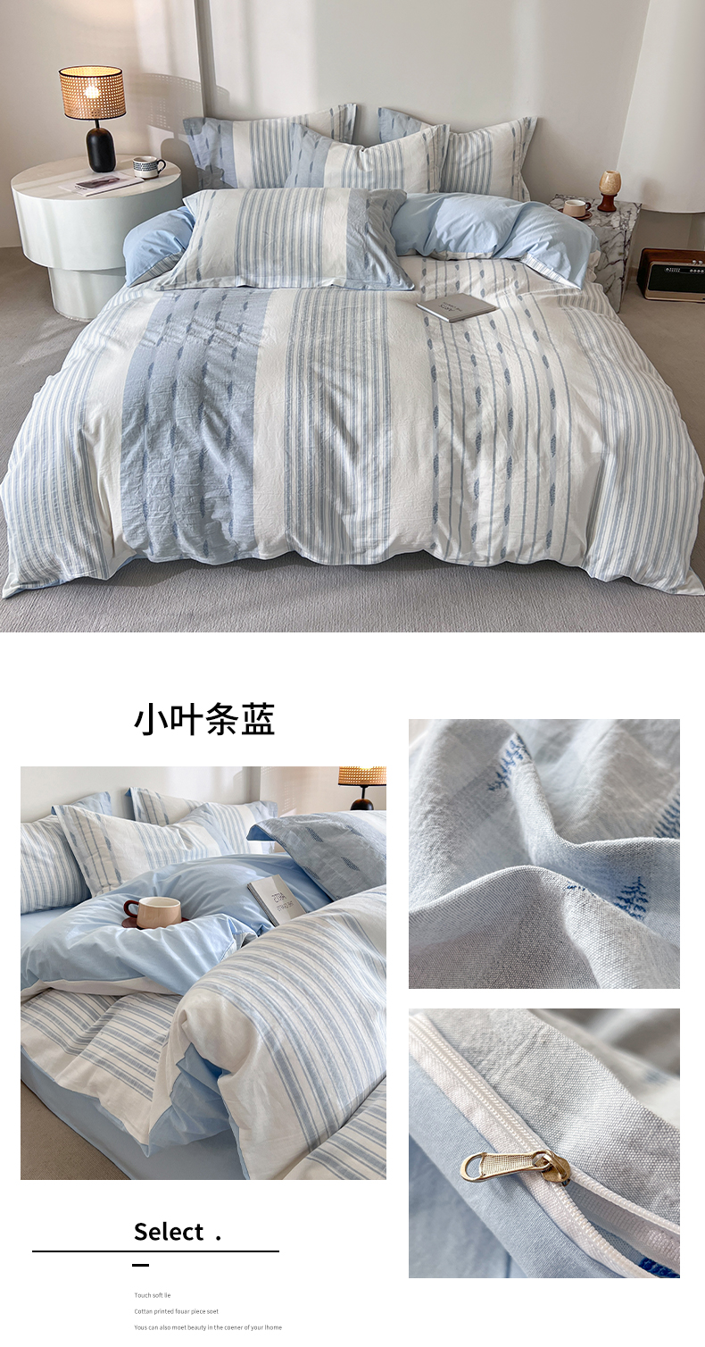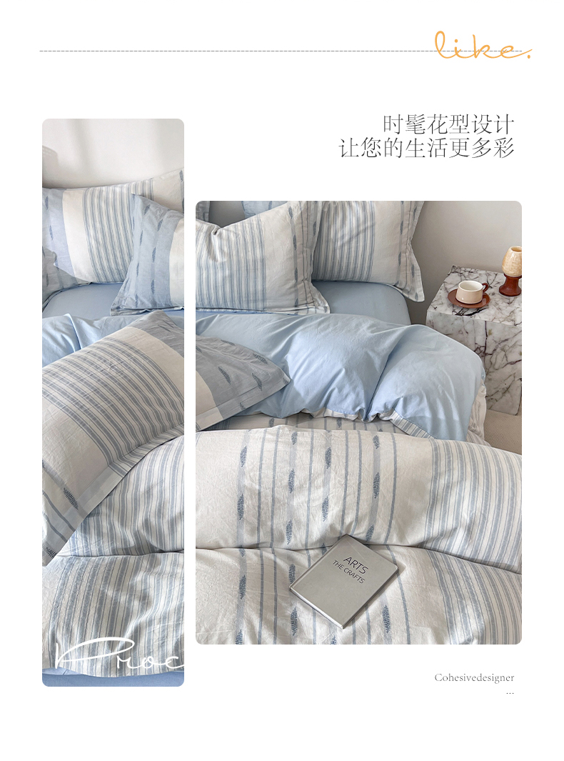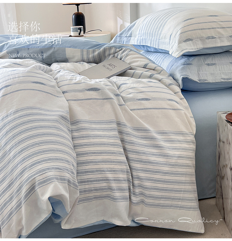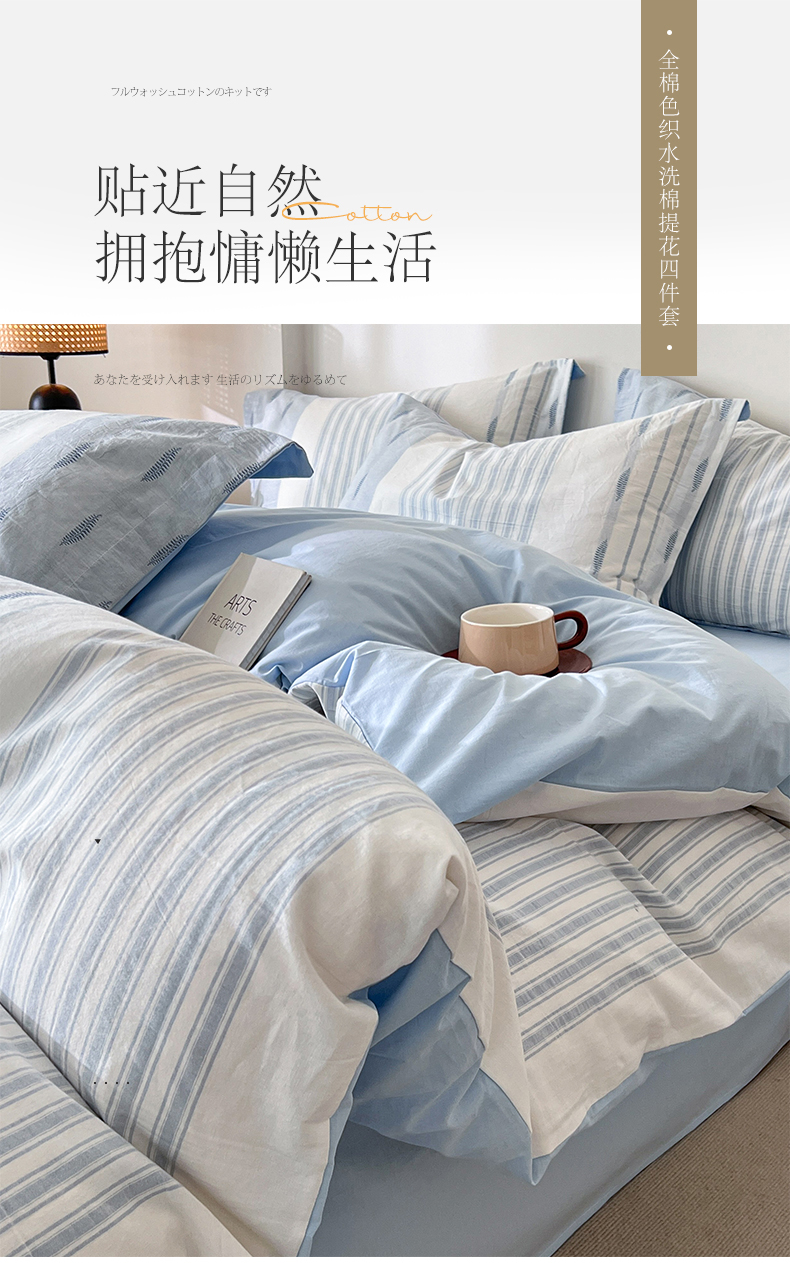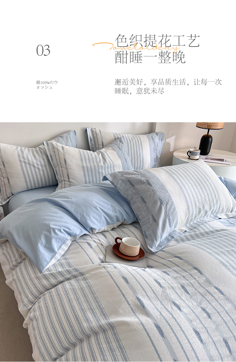 商品名称:小懒猪2025色织水洗棉提花四件套 小叶条蓝