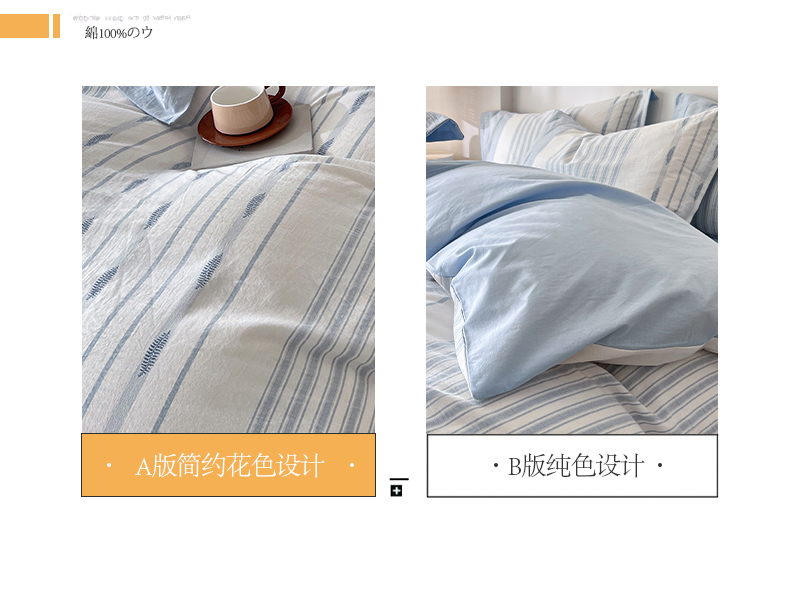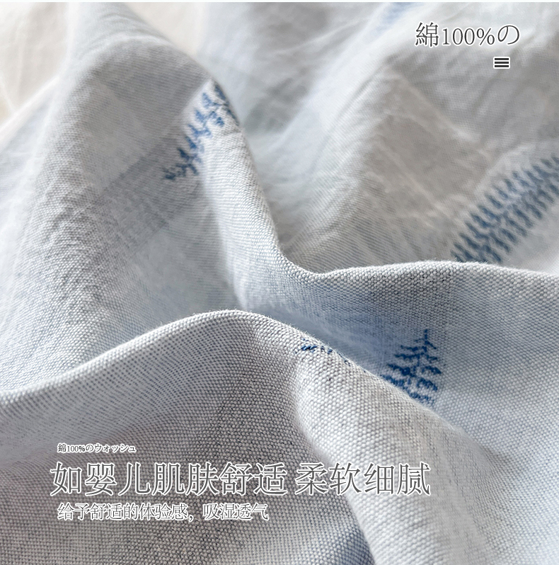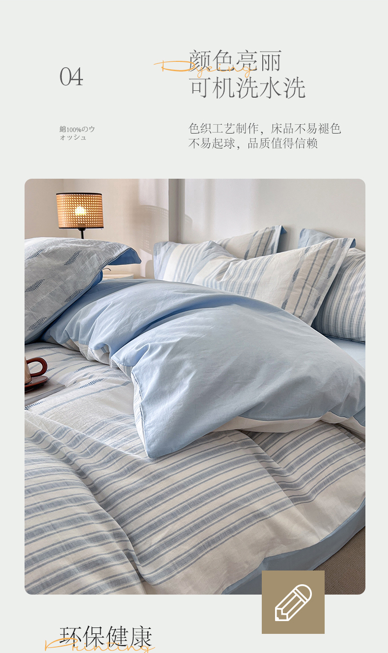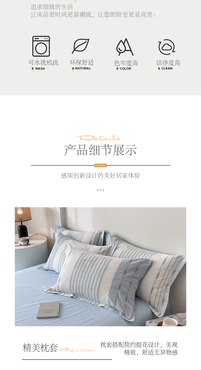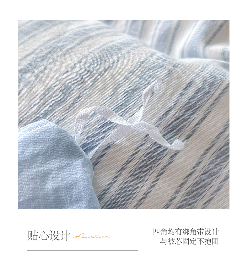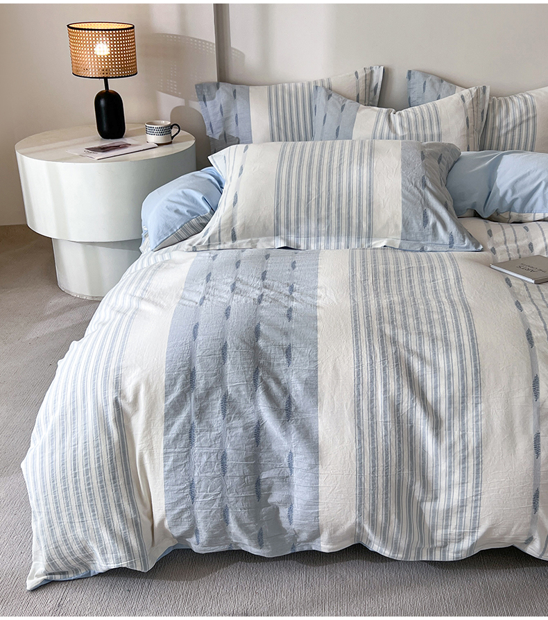商品名称:小懒猪2025色织水洗棉提花四件套 小叶条蓝