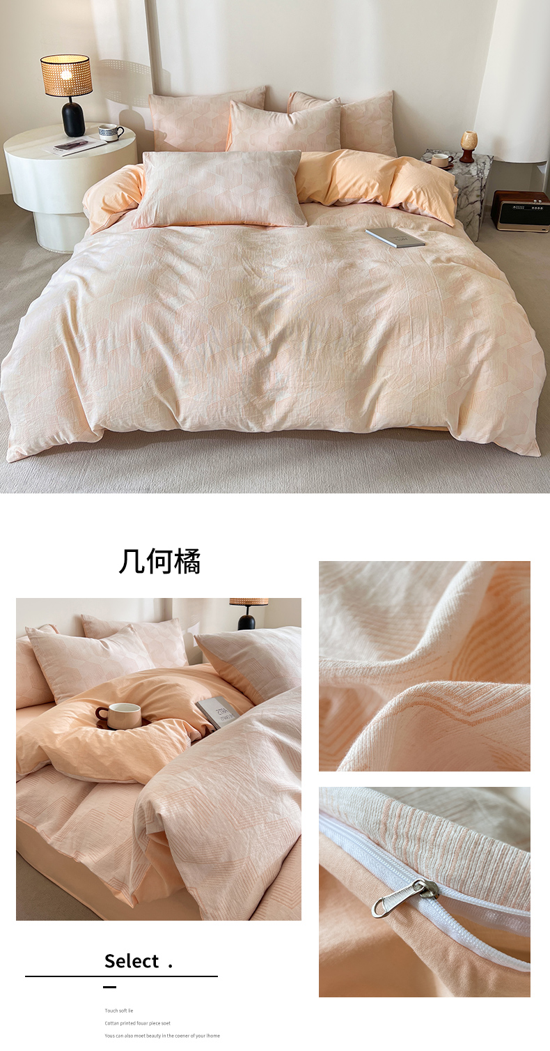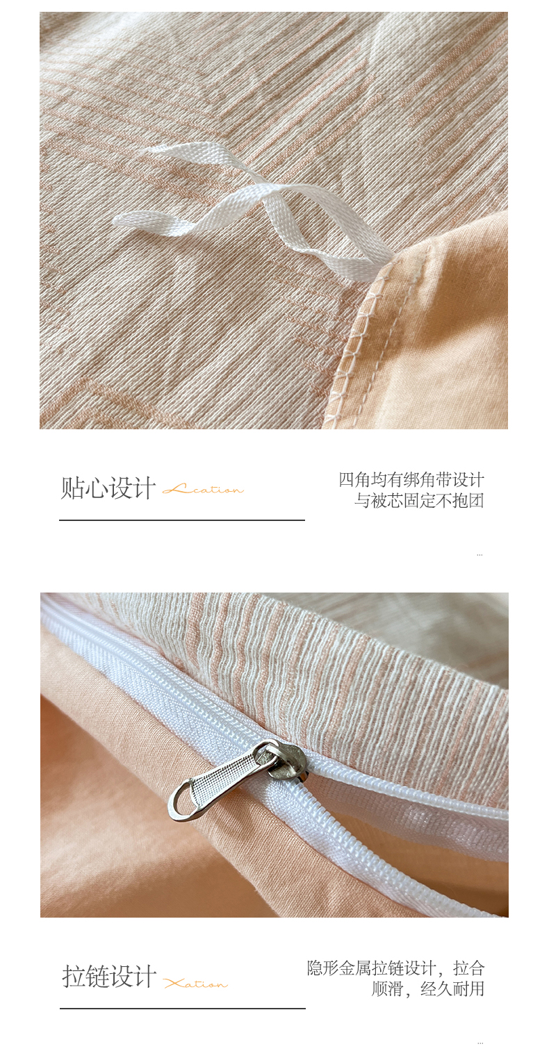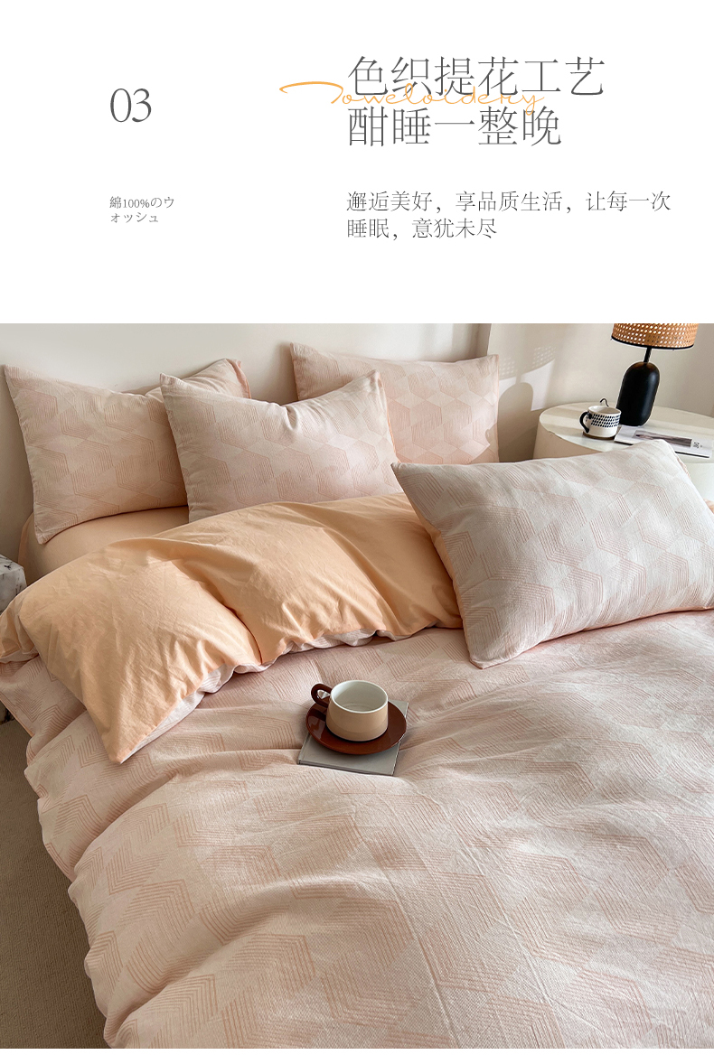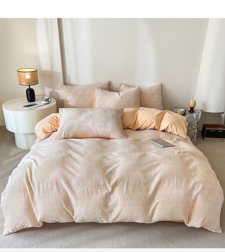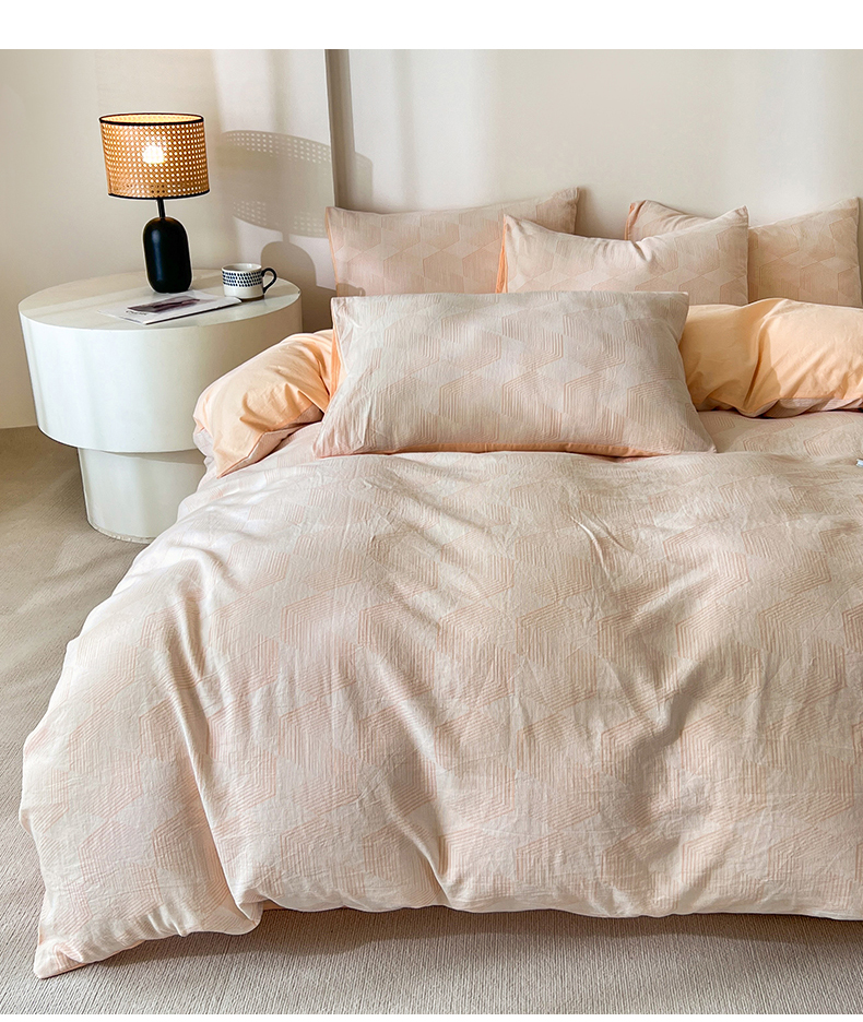 商品名称:小懒猪2025色织水洗双层纱提花四件套 几何橘