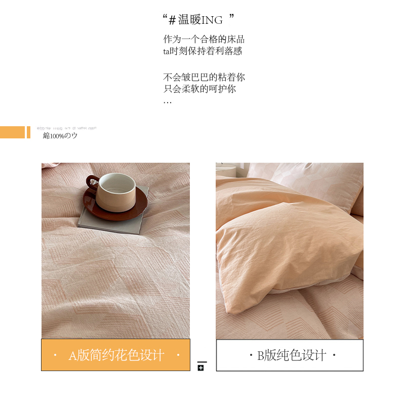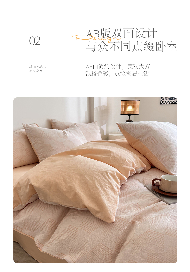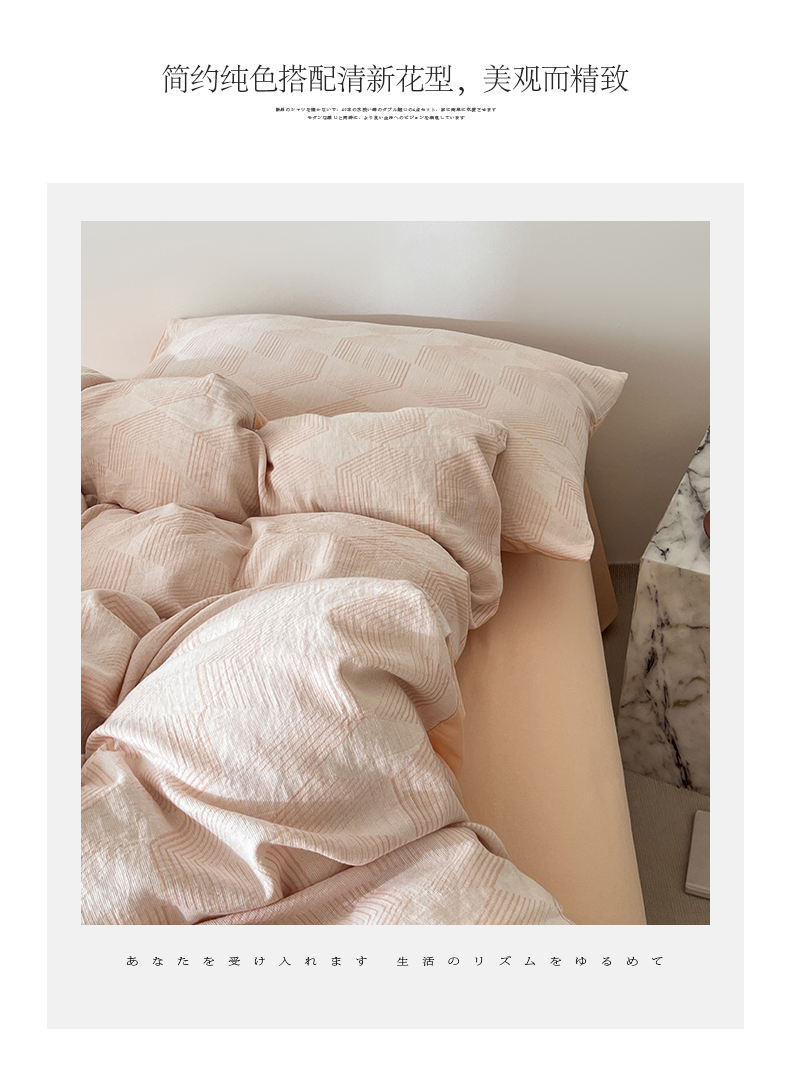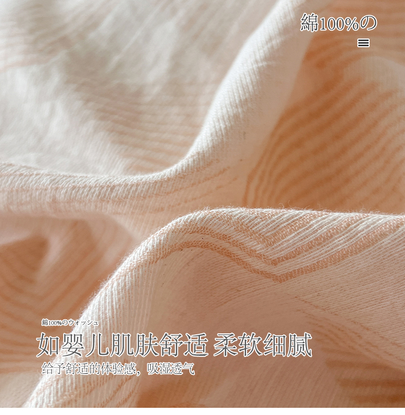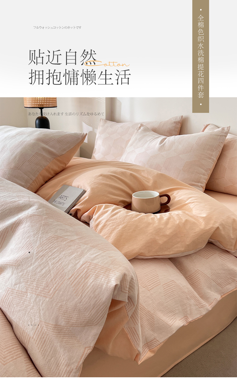 商品名称:小懒猪2025色织水洗双层纱提花四件套 几何橘