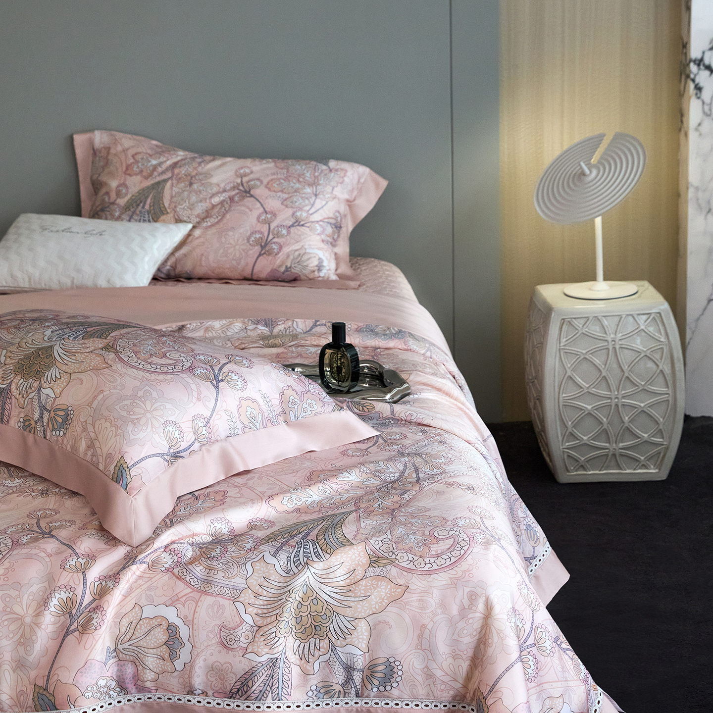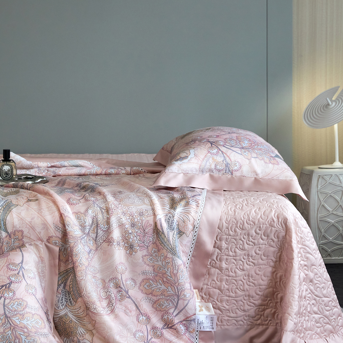 时亿家居 2025新款100s天丝棉兰精天丝床盖款夏被四件套-剑桥系列 剑桥 粉