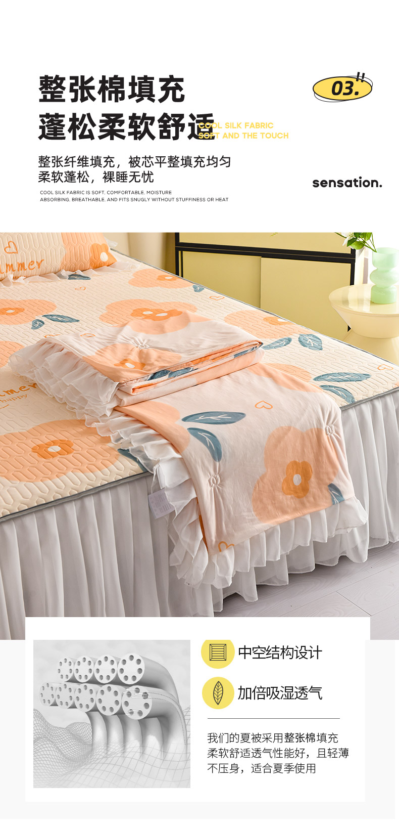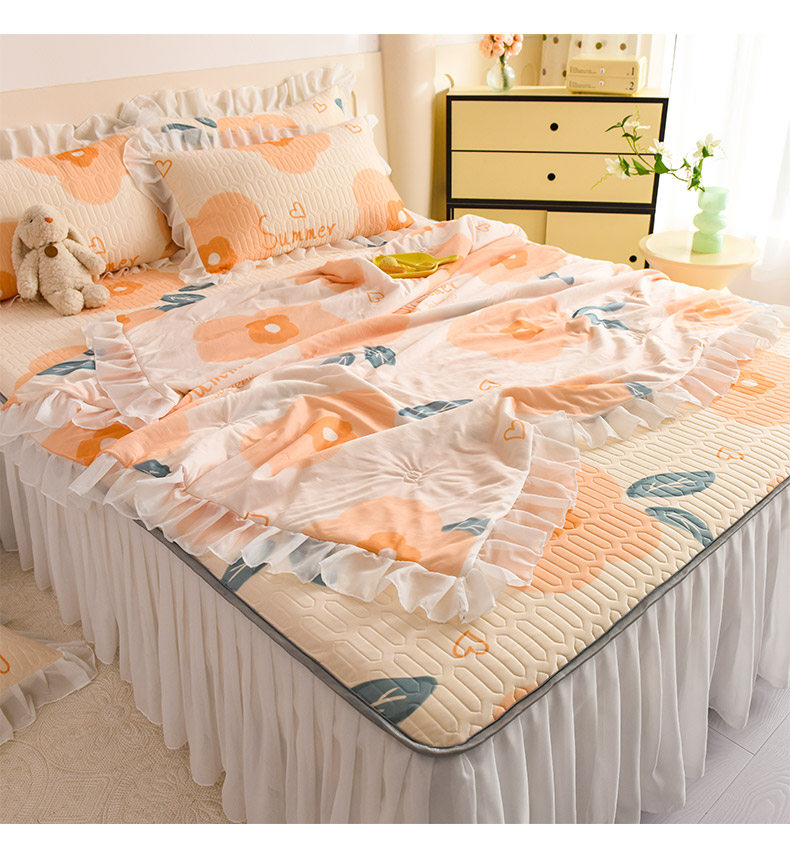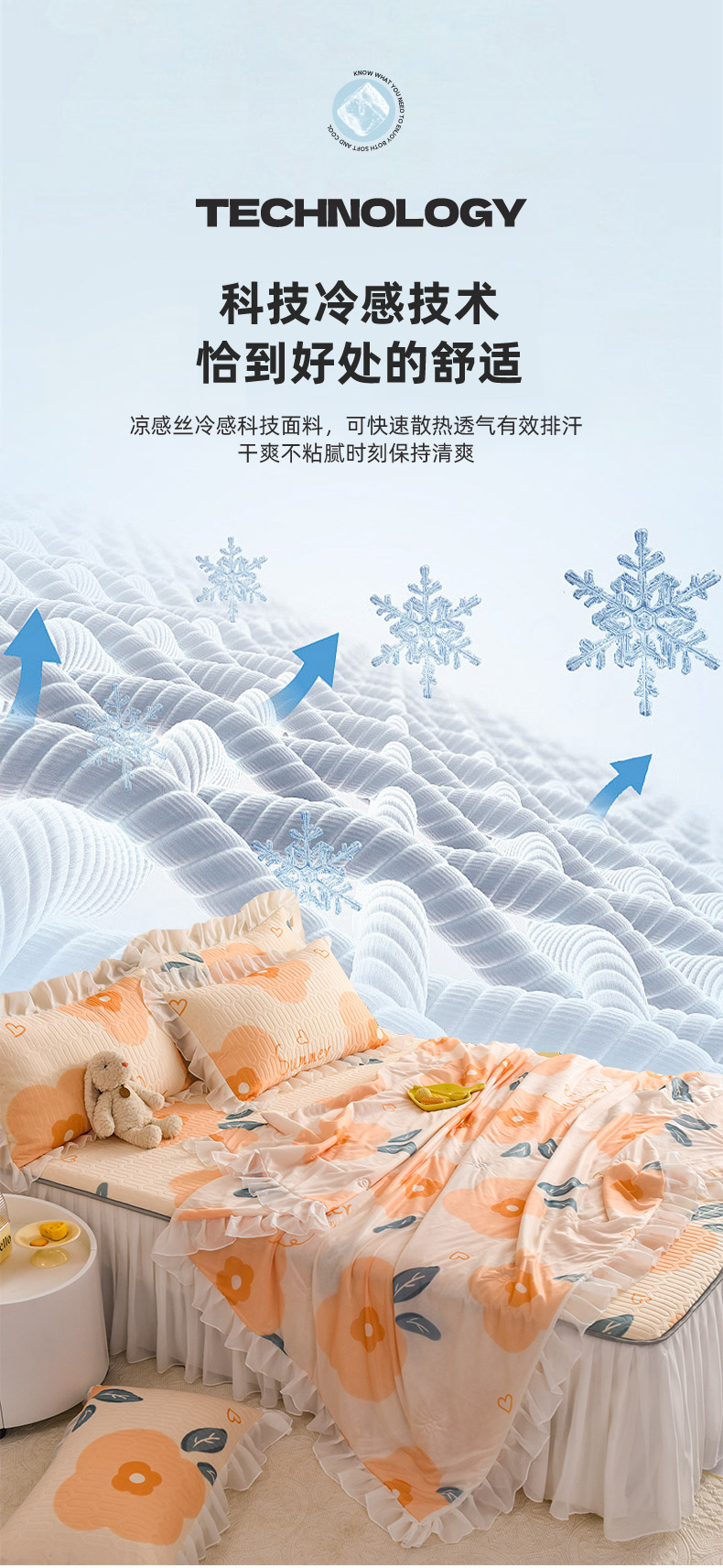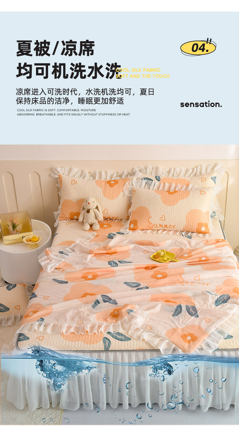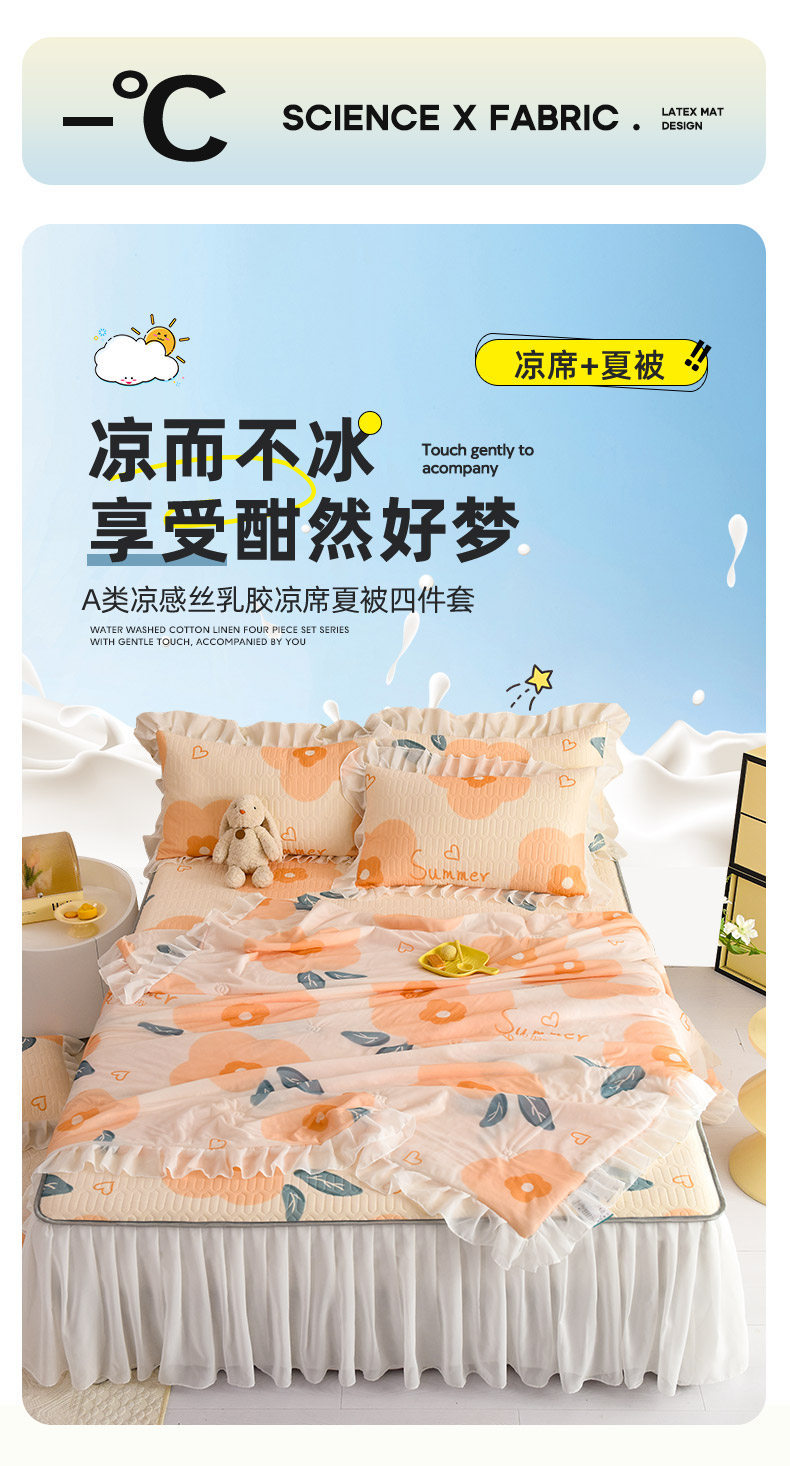 当前位置: 91家纺网 > 商品网购 > 床品套件 > 四件套 > 夏被四件套 > 悦织湾家纺 2025新款A类凉感丝床裙款乳胶凉席席子夏被夏凉被空调被四件套 浪漫花语