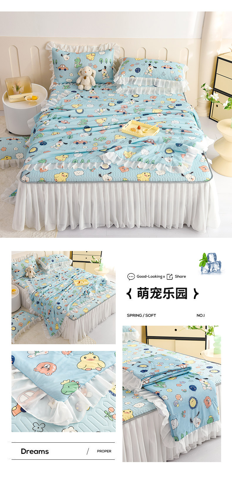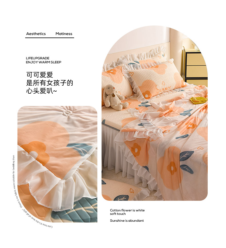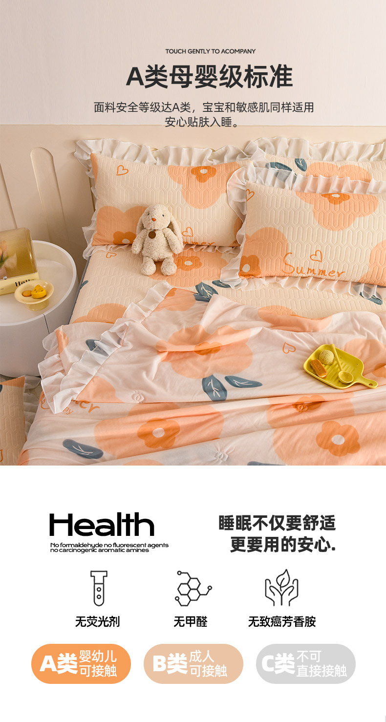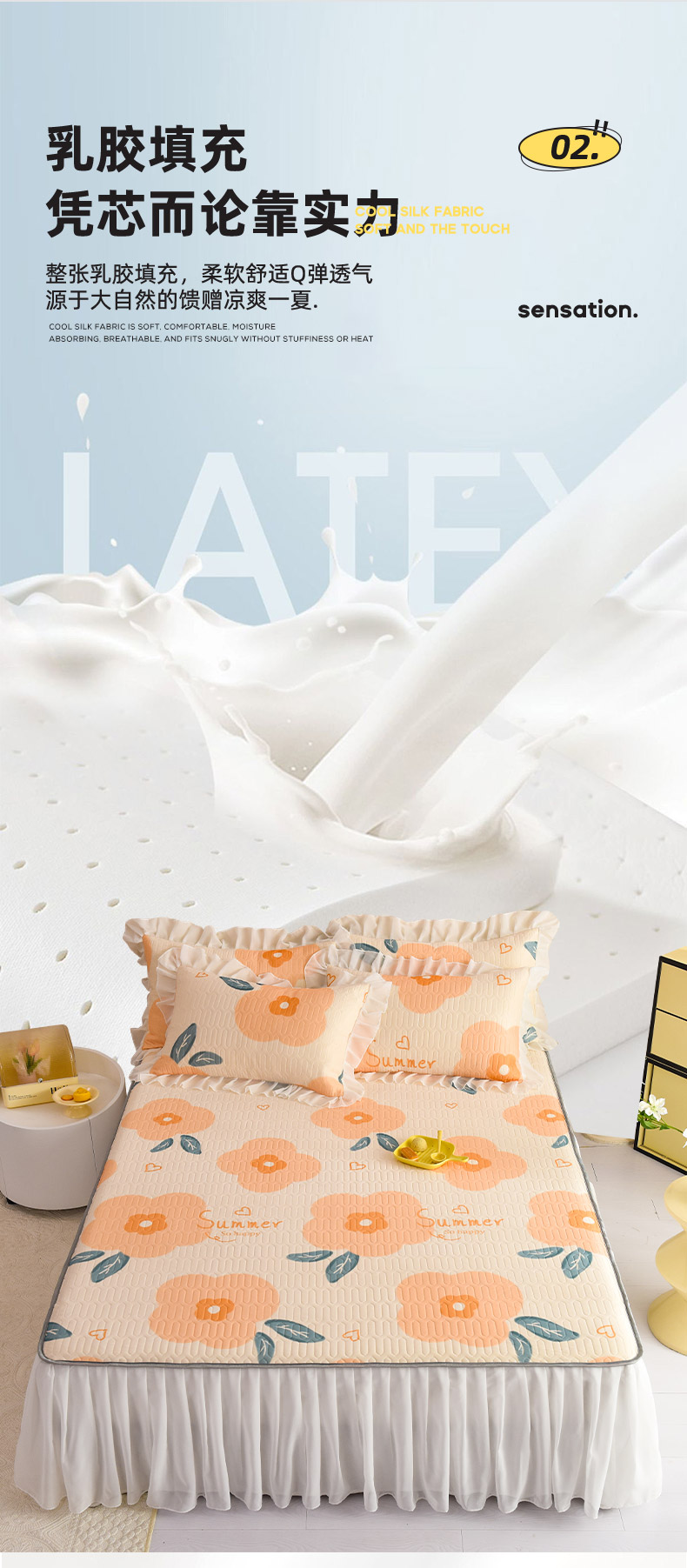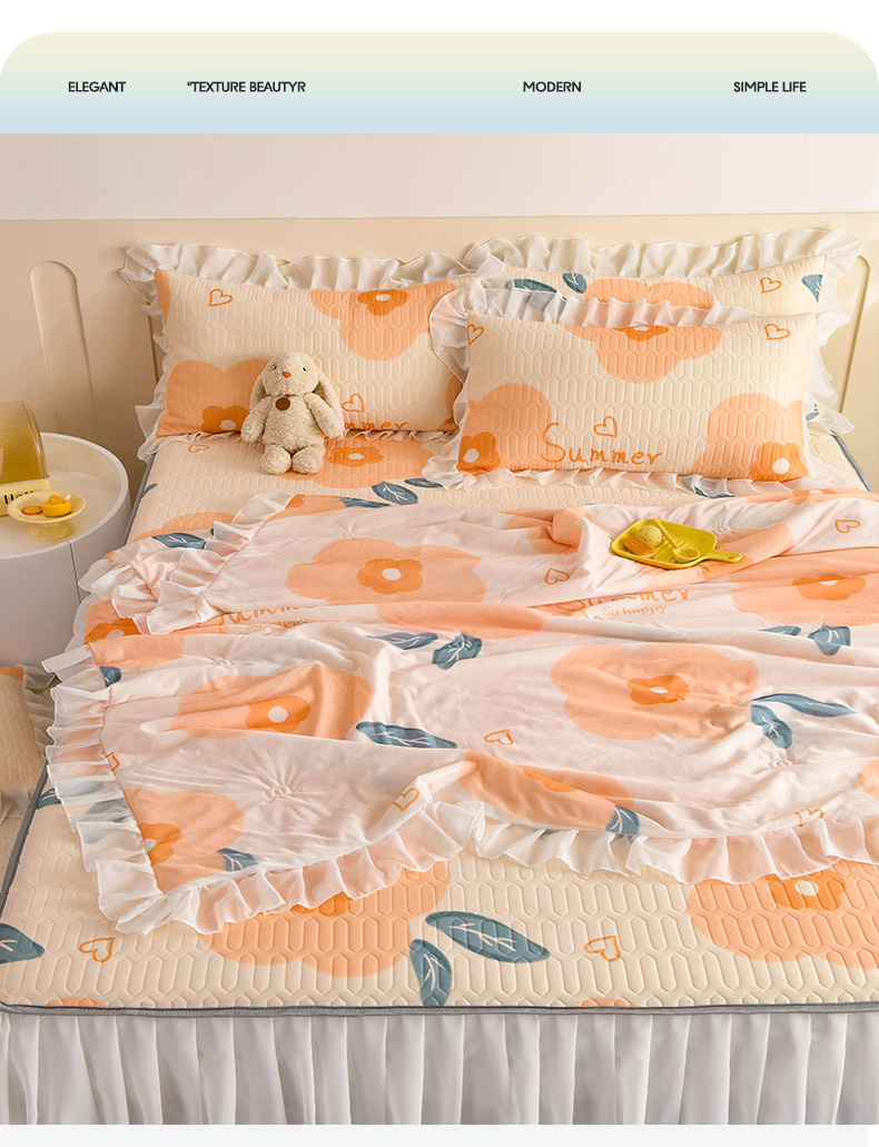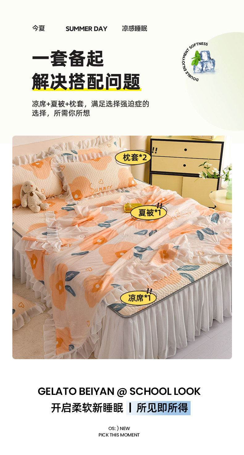 当前位置: 91家纺网 > 商品网购 > 床品套件 > 四件套 > 夏被四件套 > 悦织湾家纺 2025新款A类凉感丝床裙款乳胶凉席席子夏被夏凉被空调被四件套 浪漫花语