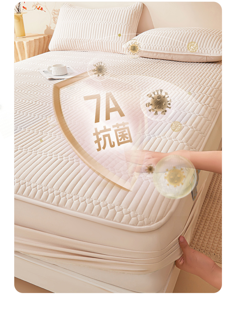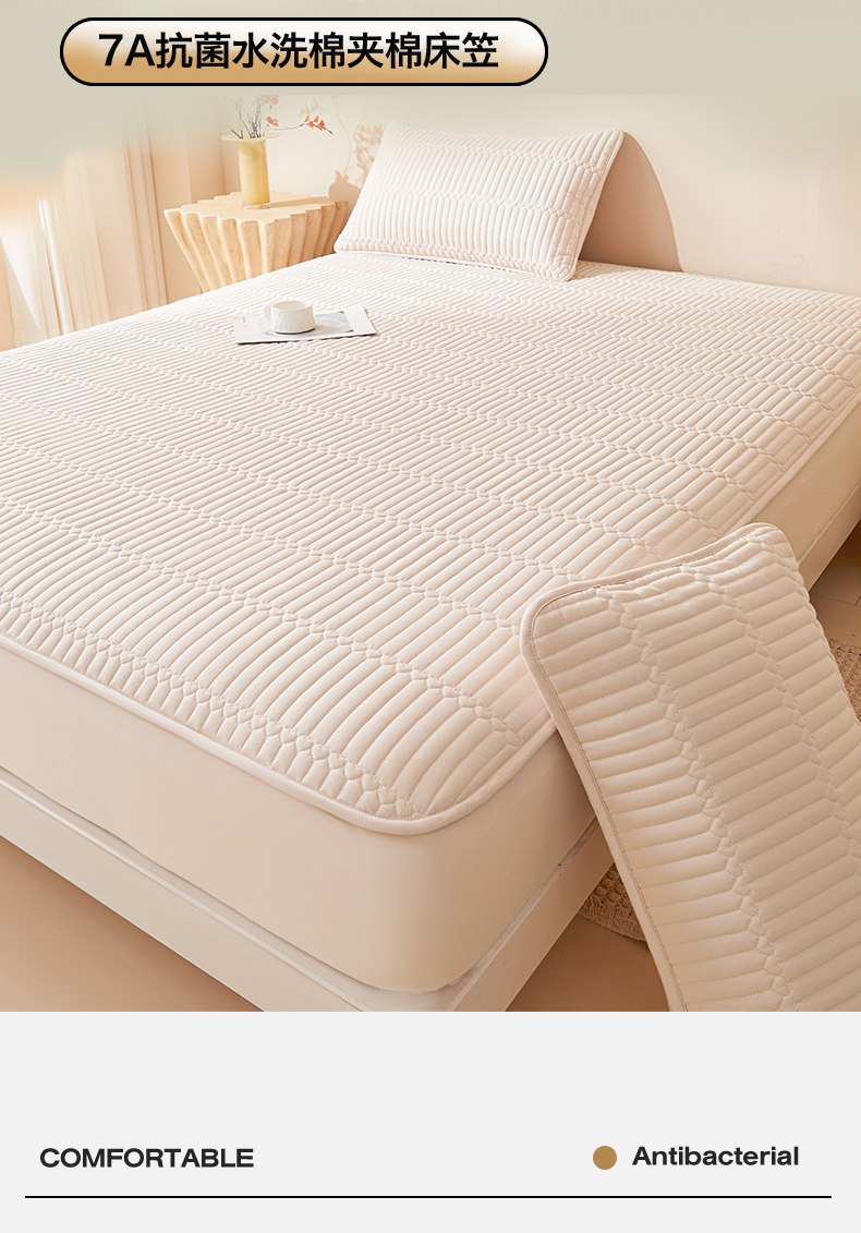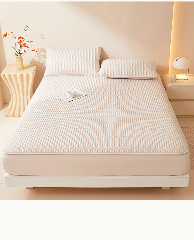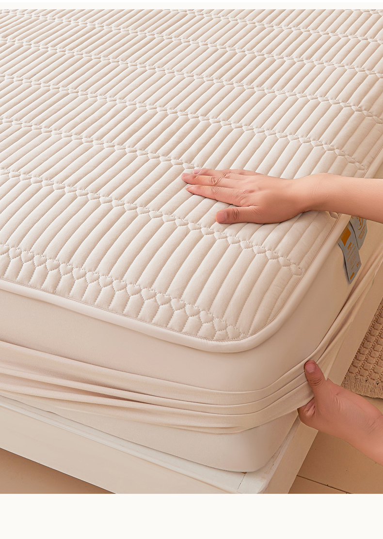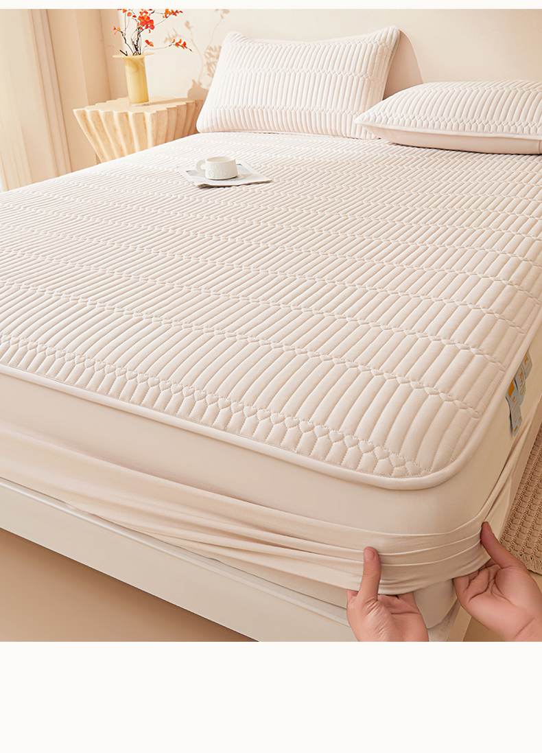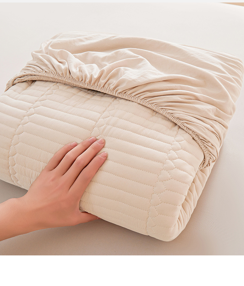 • 91家纺网 家纺一手货源 找家纺 雯豆家纺 2025新款简爱A类夹棉床笠三件套水洗棉磨毛床单保护套 简爱-奶咖