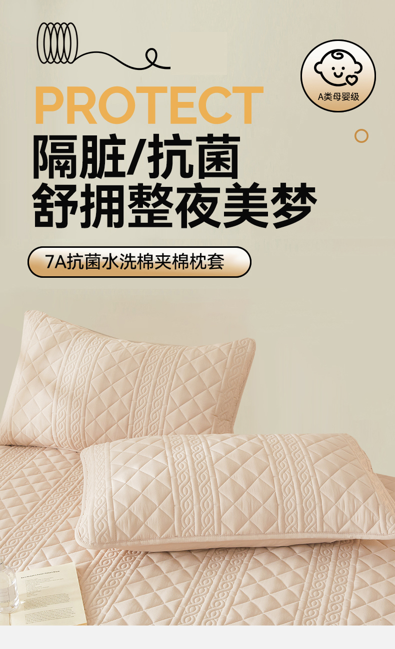 (总)雯豆家纺 2025新款简爱防水款夹棉加厚枕套单只一对装水洗棉枕套