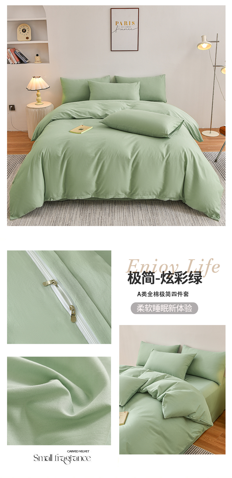 商品名称:宇彬家纺 2025新款13374全棉纯棉母婴级简约轻奢小清新纯色单被套 极简-炫彩绿