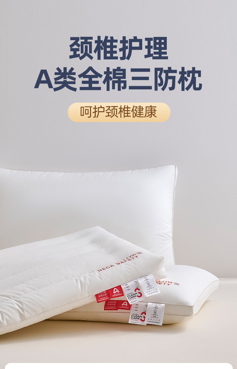 当前位置: 91家纺网 > 商品网购 > 枕头/枕芯/保健枕/颈椎枕 > 普通枕芯 > 帝诺妮枕芯坊 2025春夏新款A类全棉三防枕 枕头枕芯 全棉三防低枕 48x74cm/只