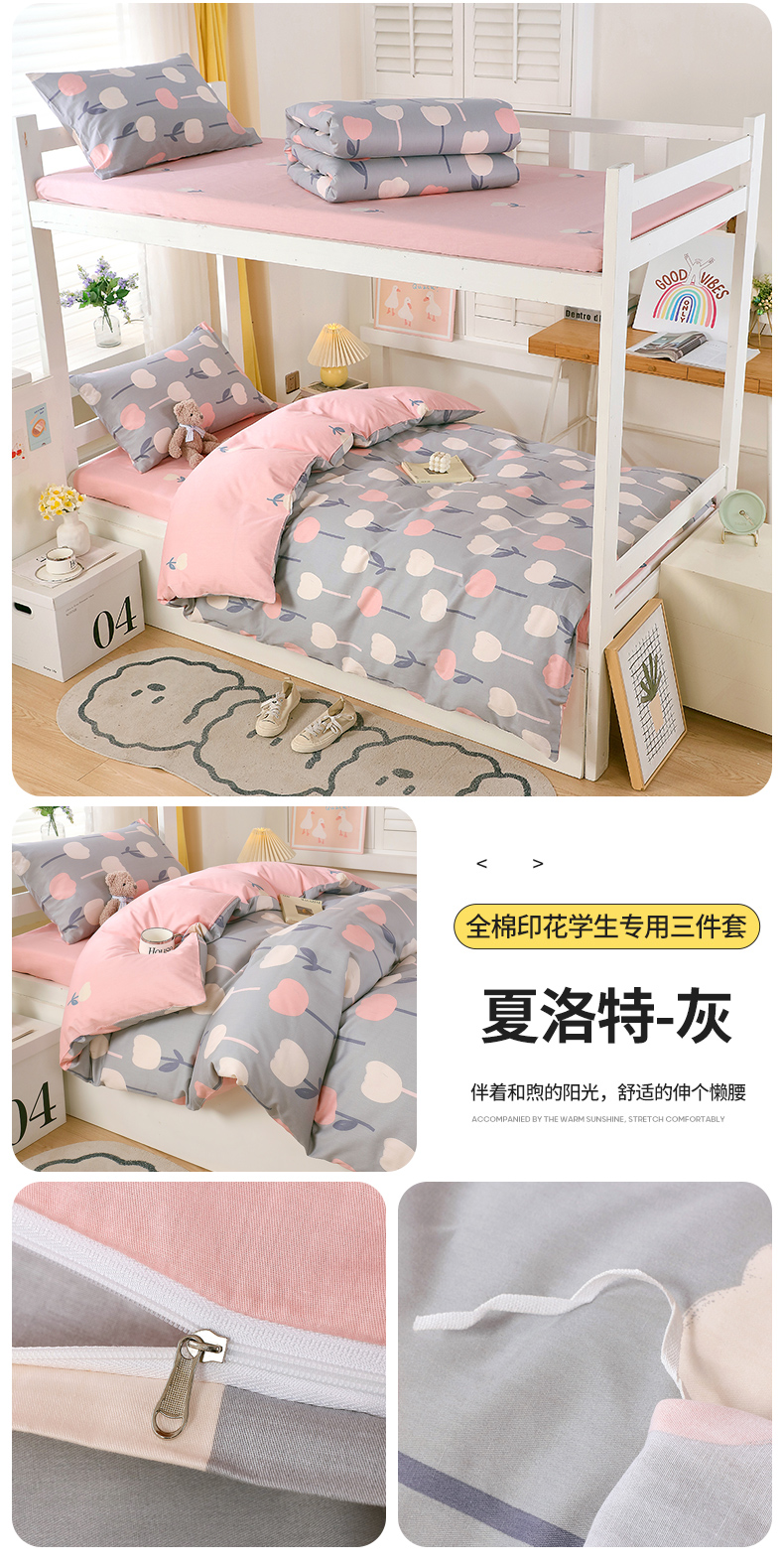 (总)悦织湾家纺 2025新款全棉100%纯棉13376高密度纯色双拼学生三件套活性环保印染宿舍,艾丽卡-冰川蓝,艾丽卡-粉,艾丽卡-灰,艾丽卡-蓝,派对熊-湖蓝,派对熊-蜜桃粉,派对熊-奶油黄,派对熊-天空蓝