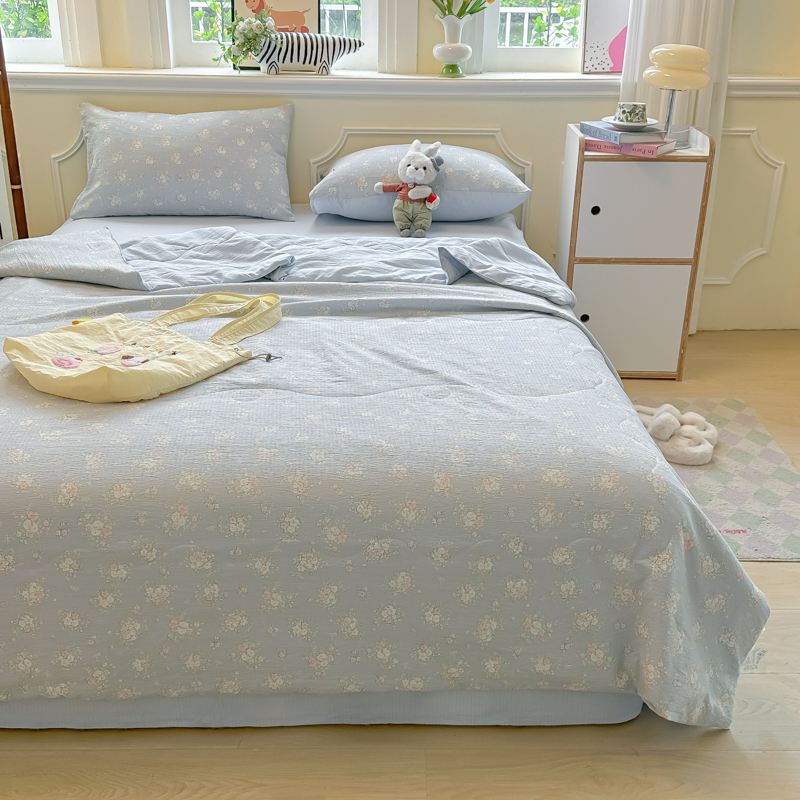 玉海棠家纺 2025新款云感双层纱暗合夏被夏凉被空调被四件套 浅春