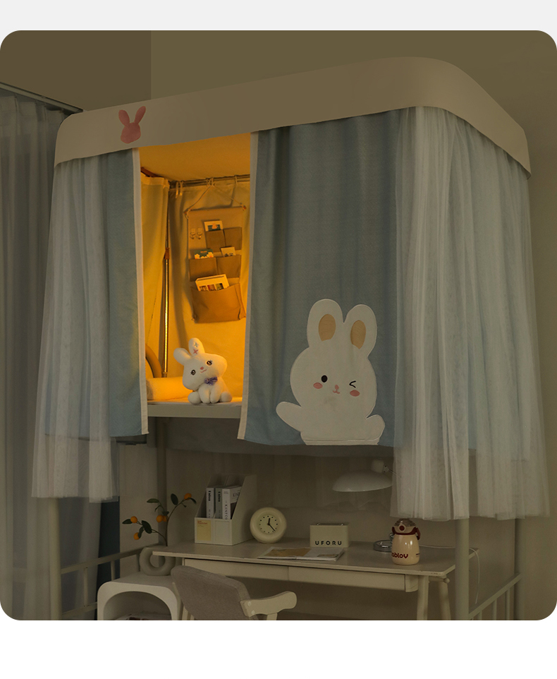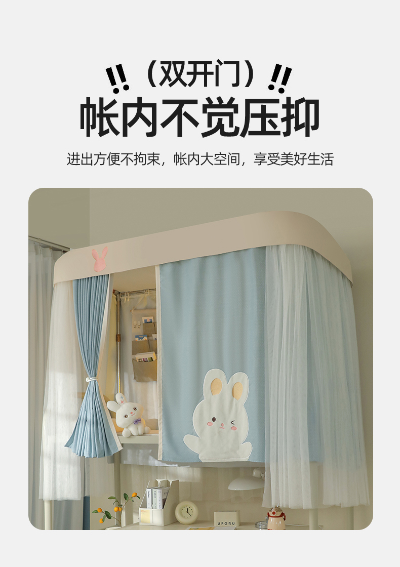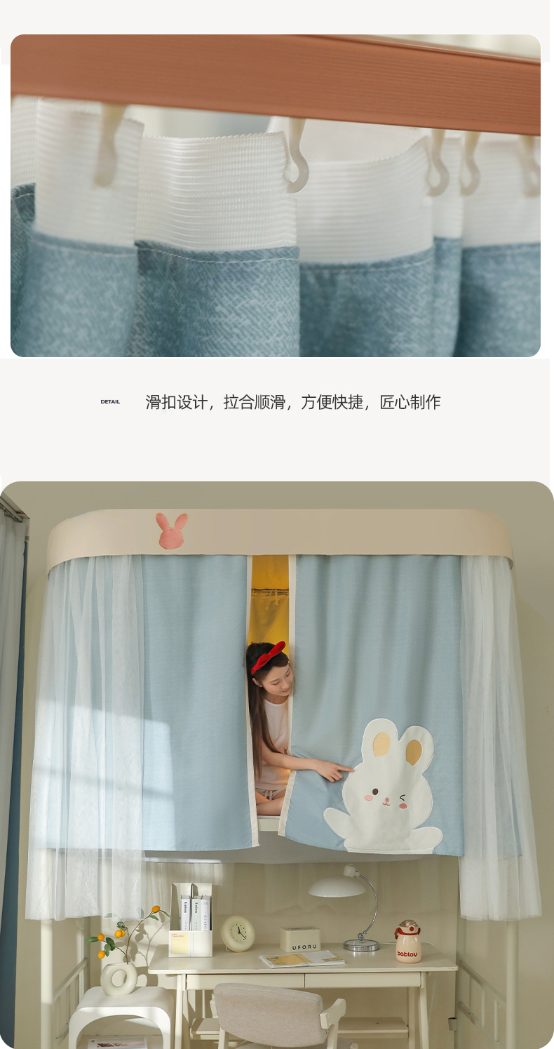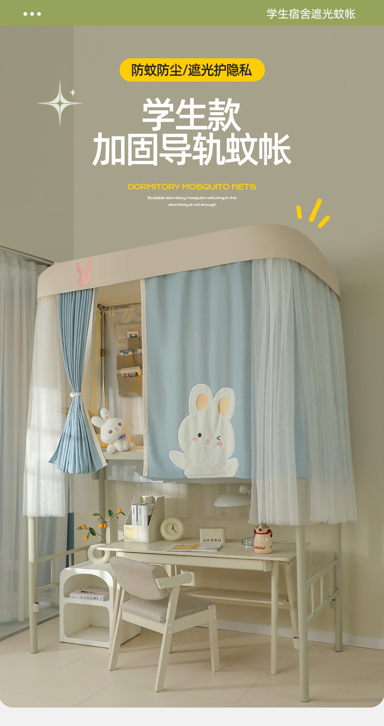 商品名称:都市缘蚊帐 2025新款学生宿舍导轨遮光床帘上下铺贴布卡通蚊帐0.8m 0.9m床 软萌兔-墨绿