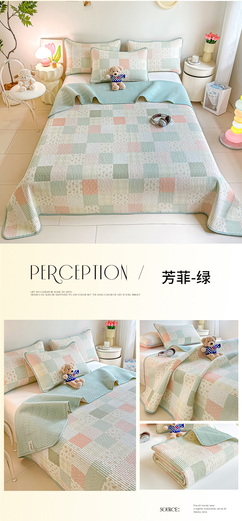 • 91家纺网 家纺一手货源 找家纺 恒尚居2025新款春秋纯棉床盖全棉印花床单床垫床褥垫-跑量(四季款) 纯棉四季款-芳菲-绿
