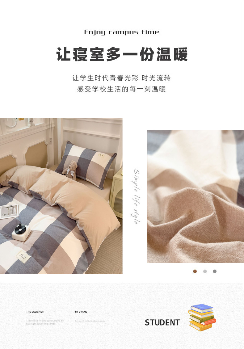 宝士康家纺 2025春夏新款简约水洗棉学生三件套宿舍三件套上下铺三件套套件学生六件套套件(床单款) 清雅中格