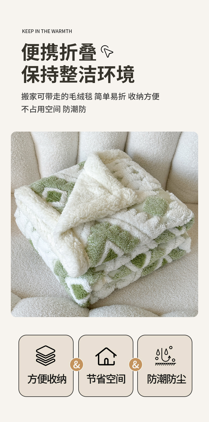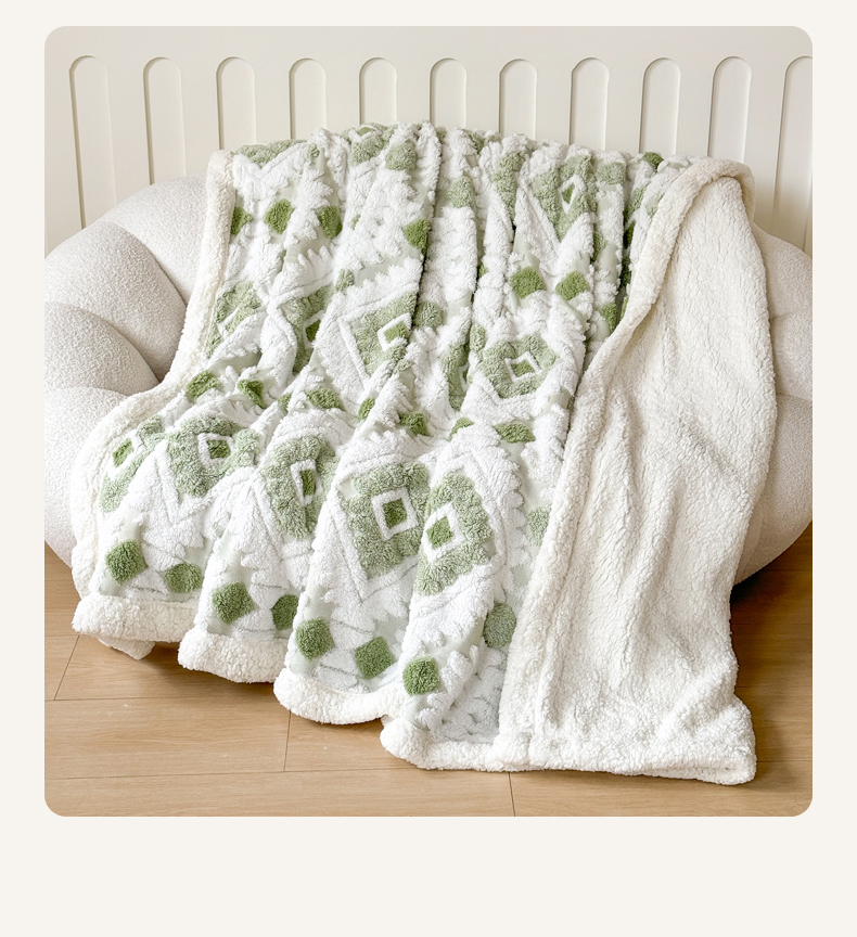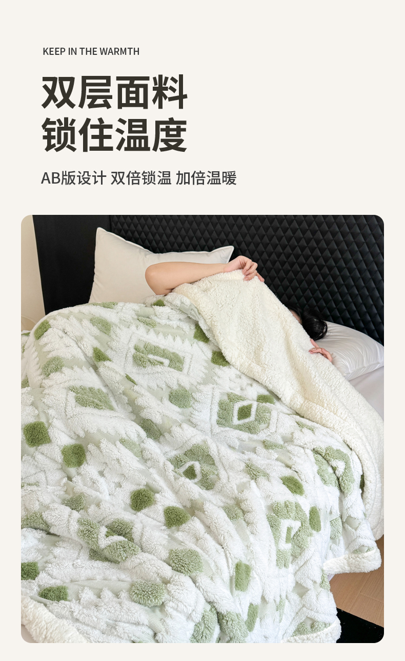 丹本家纺 2025新款轻奢阳离子提花镂空塔芙绒羊羔绒保暖午睡双层毛毯办公室盖毯 浅绿