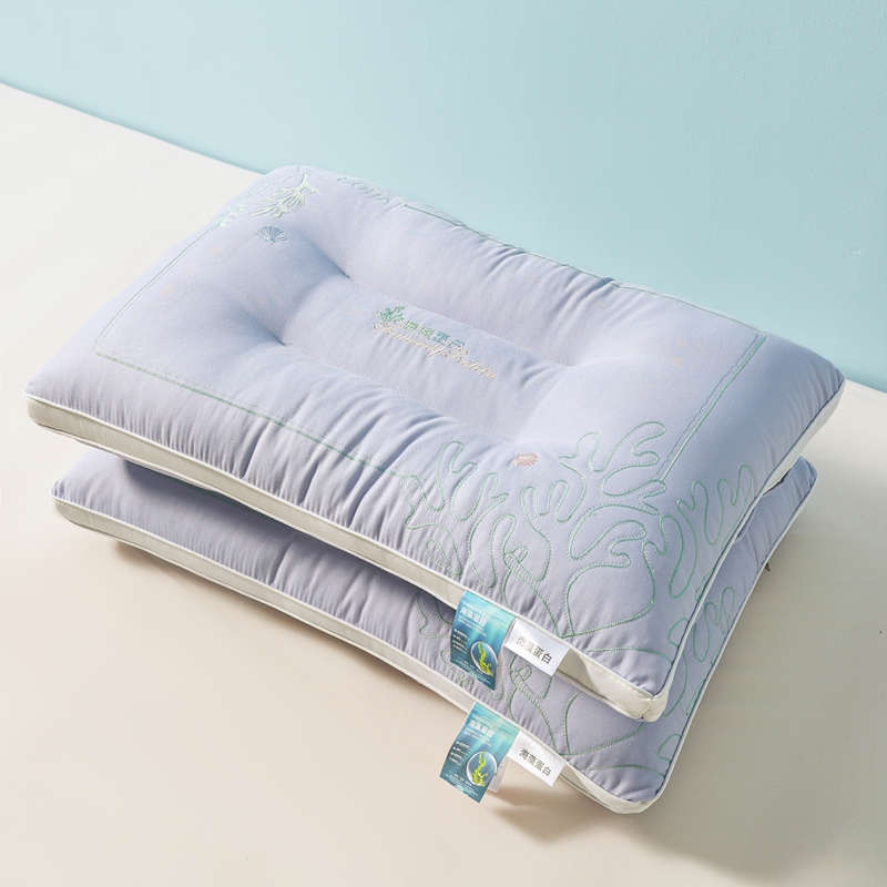 商品名称:轩琪家纺 2025新款刺绣海藻蛋白枕头枕芯 灰色 900克
