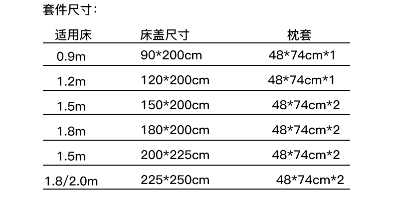 180x200cm单床盖 | ¥56.00 |