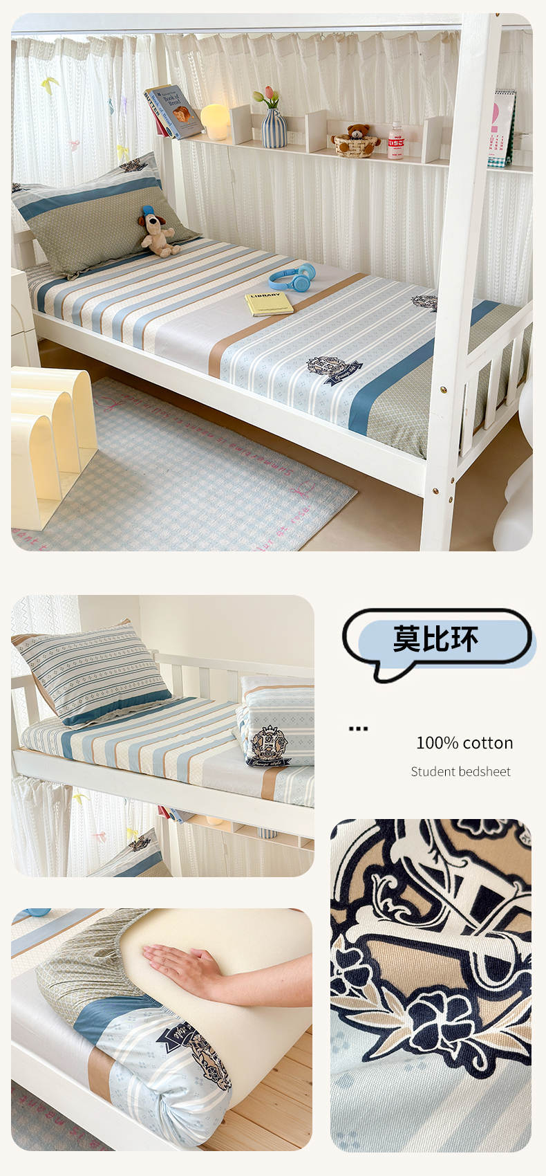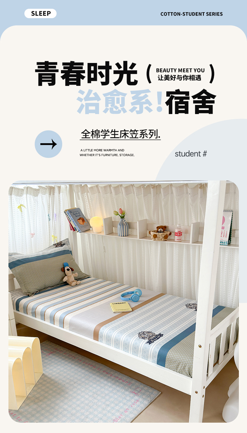 • 91家纺网 家纺一手货源 找家纺 拾物记 2025新款A类棉学生床笠第二批 莫比环
