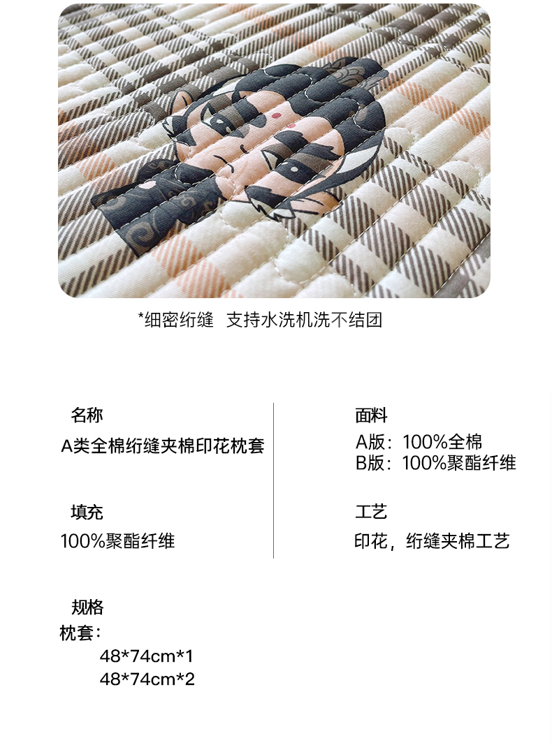 商品名称:金鑫汇家纺 2025新款A类全绗缝夹棉印花枕套 无畏申公豹·咖