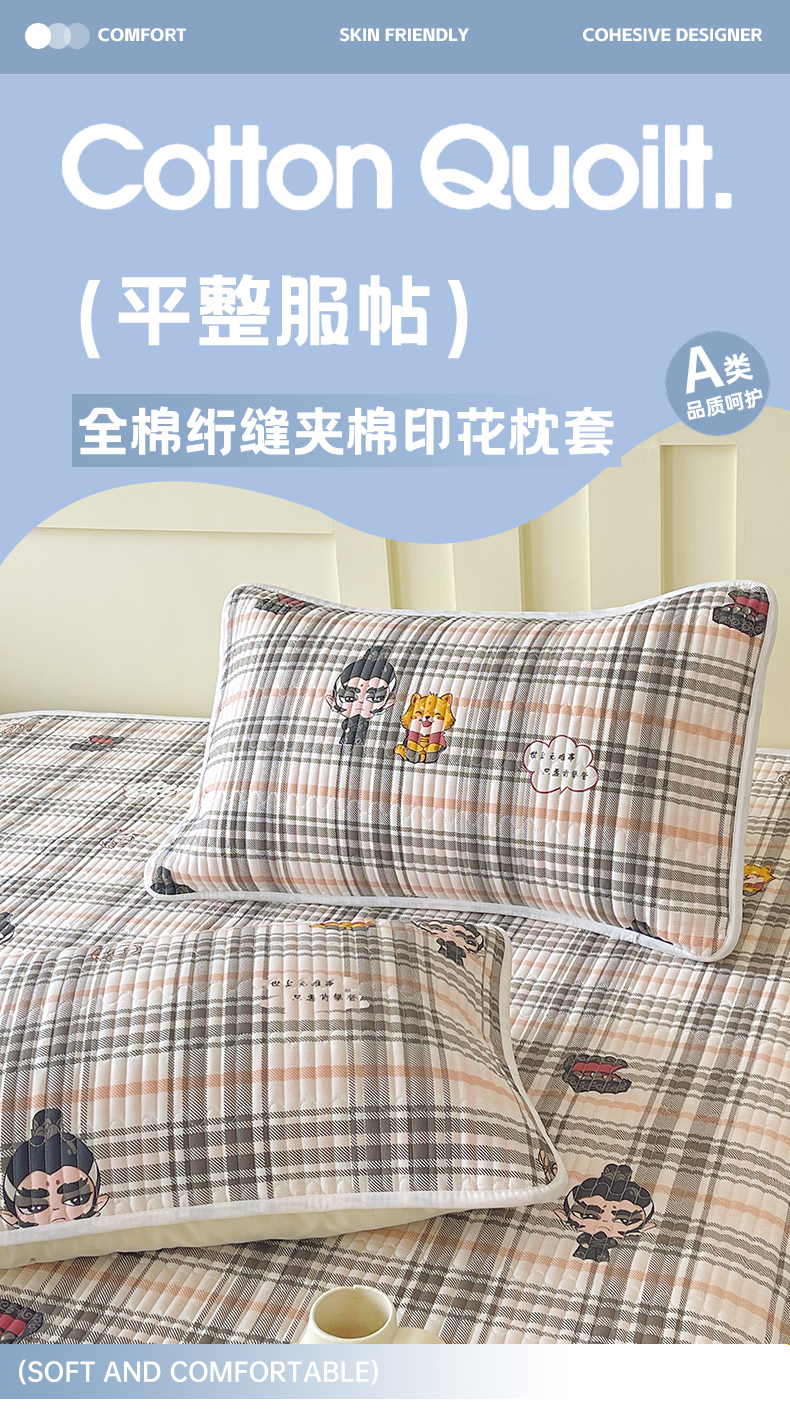 金鑫汇家纺 2025新款A类全绗缝夹棉印花枕套 无畏申公豹·咖
