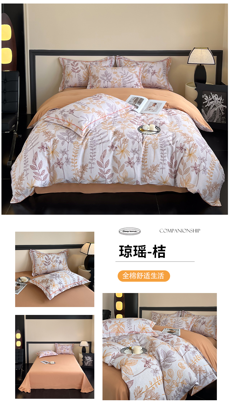 当前位置: 91家纺网 > 商品网购 > 床品套件 > 四件套 > 普通磨毛四件套 > 艾迪尚家纺 2025新款生态全棉纯棉磨毛印花四件套 宁静—米